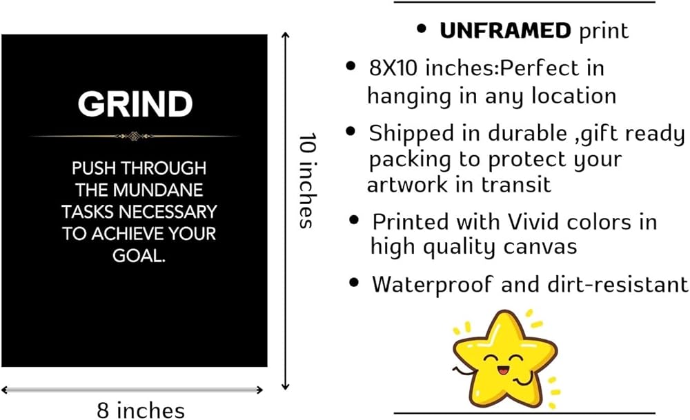 ديكور خالٍ من المتاعب: تأتي هذه الملصقات بدون إطار، مما يسمح لك باختيار الإطارات التي تتناسب تمامًا مع جمالية مكتبك. قم بتخصيص مساحة العمل الخاصة بك باستخدام هذه الملصقات التي تجسد روح المبادرة.