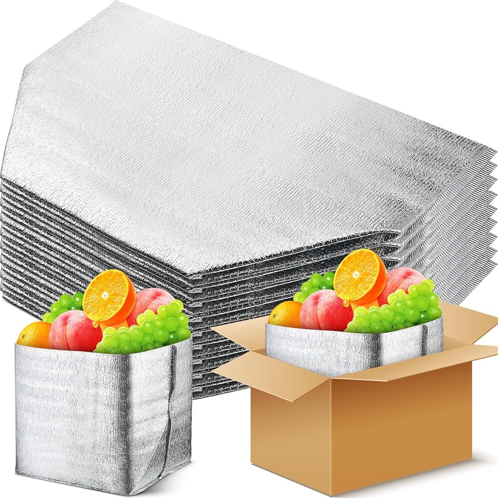 Reliable Foil Insulation: these insulated shipping boxes are equipped with a composition of bubble lining and aluminum foil, which enables temperature control and provides a reliable insulation barrier to keep your food hot or cold as desired; The silver foil material reflects heat and effectively retains temperature for optimal freshness; This means that you can trust these liners to keep your food at the right temperature, even during long trips or extended periods of time