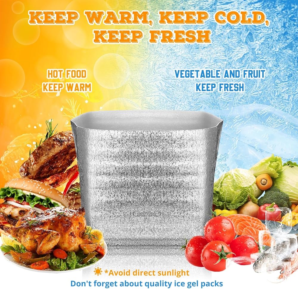 Multiple Usage and Occasions: these insulated boxes for shipping frozen food offer multiple uses and are suitable for various occasions; Whether you're going on a picnic, buying food at the grocery store and taking it home, or delivering hot or cold food to customers, they are effective to use; They are also ideal for food delivery services or sending homemade treats to loved ones; With their versatility, you can rely on these liners for your temperature sensitive needs