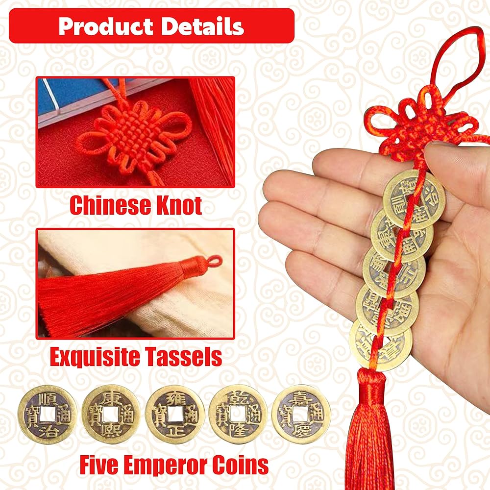 These decorative hanging ornaments, with their beautiful meaning and cultural significance, make a thoughtful gift. These Chinese fortune coins can be gifted during Chinese New Year, weddings, anniversaries, or other occasions that you wish to enhance with a touch of traditional Chinese culture.