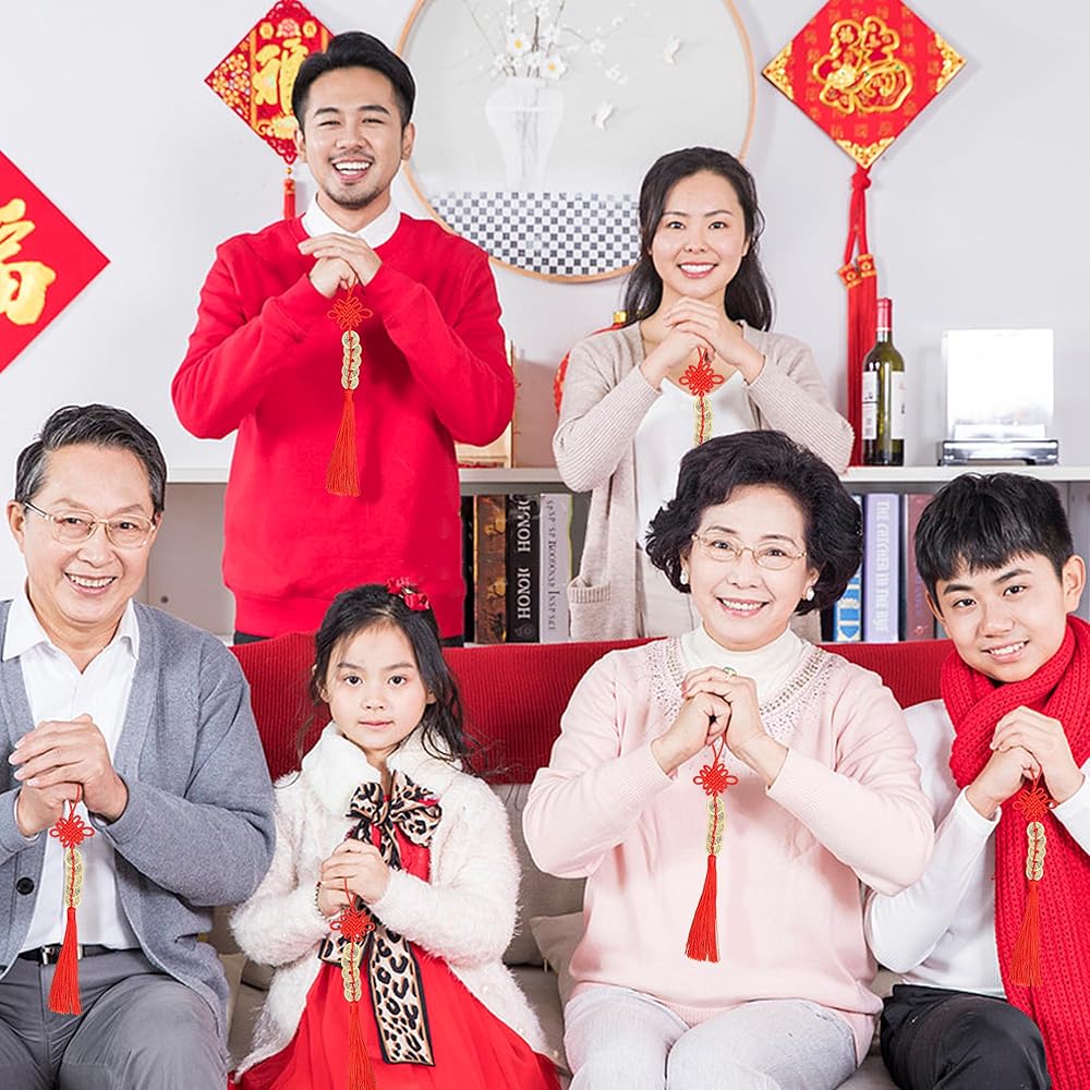 The lunar new year decorations are designed in classic gold and red colors, combines Chinese knots, copper coin,tassels ,which symbolize good fortune and wealth in Chinese culture and are widely used in lunar New Year celebrations.