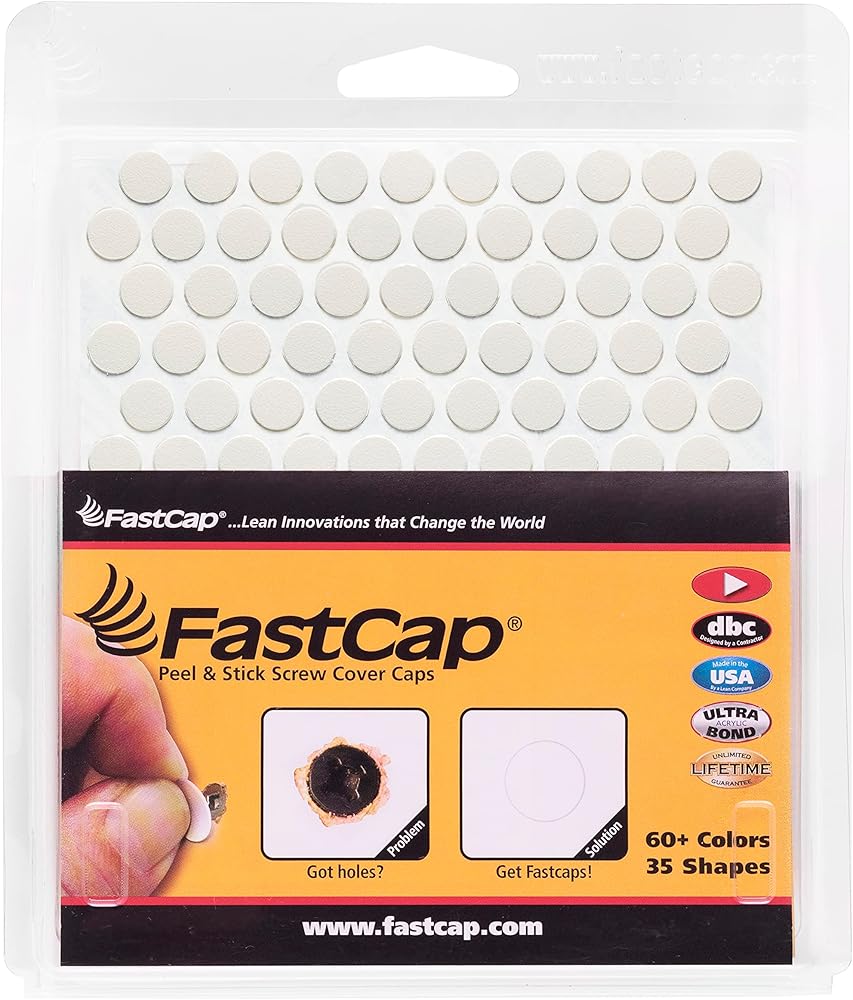 FastCap's Peel and Stick Screw Hole Covers are a versatile and efficient solution to the common issue of unsightly screw holes. Made in the USA, these cover caps are crafted from durable PVC, renowned for its toughness and longevity.