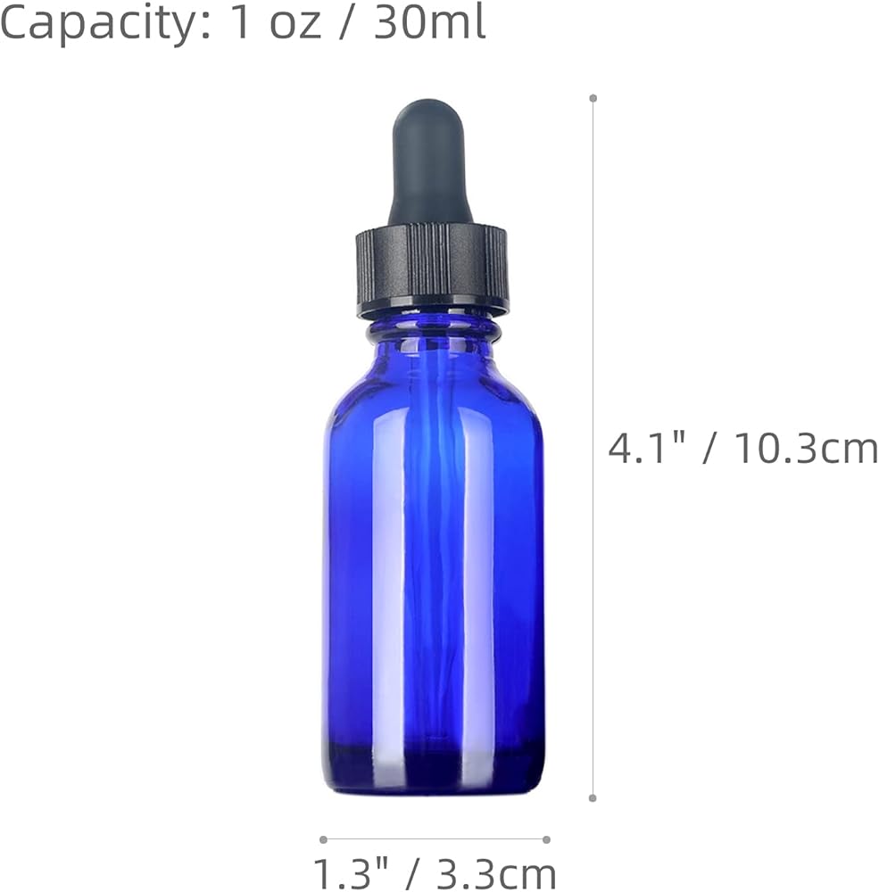 - Blue Glass Bottles, with Glass Droppers