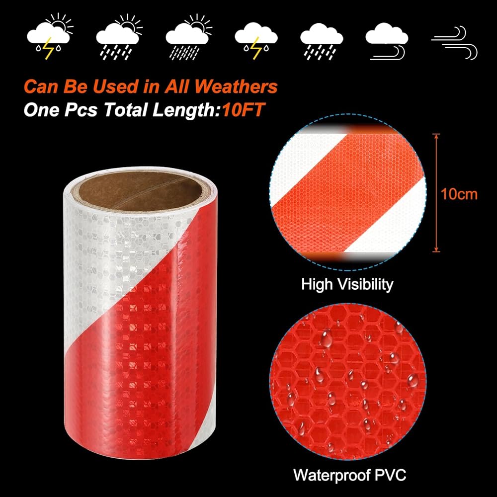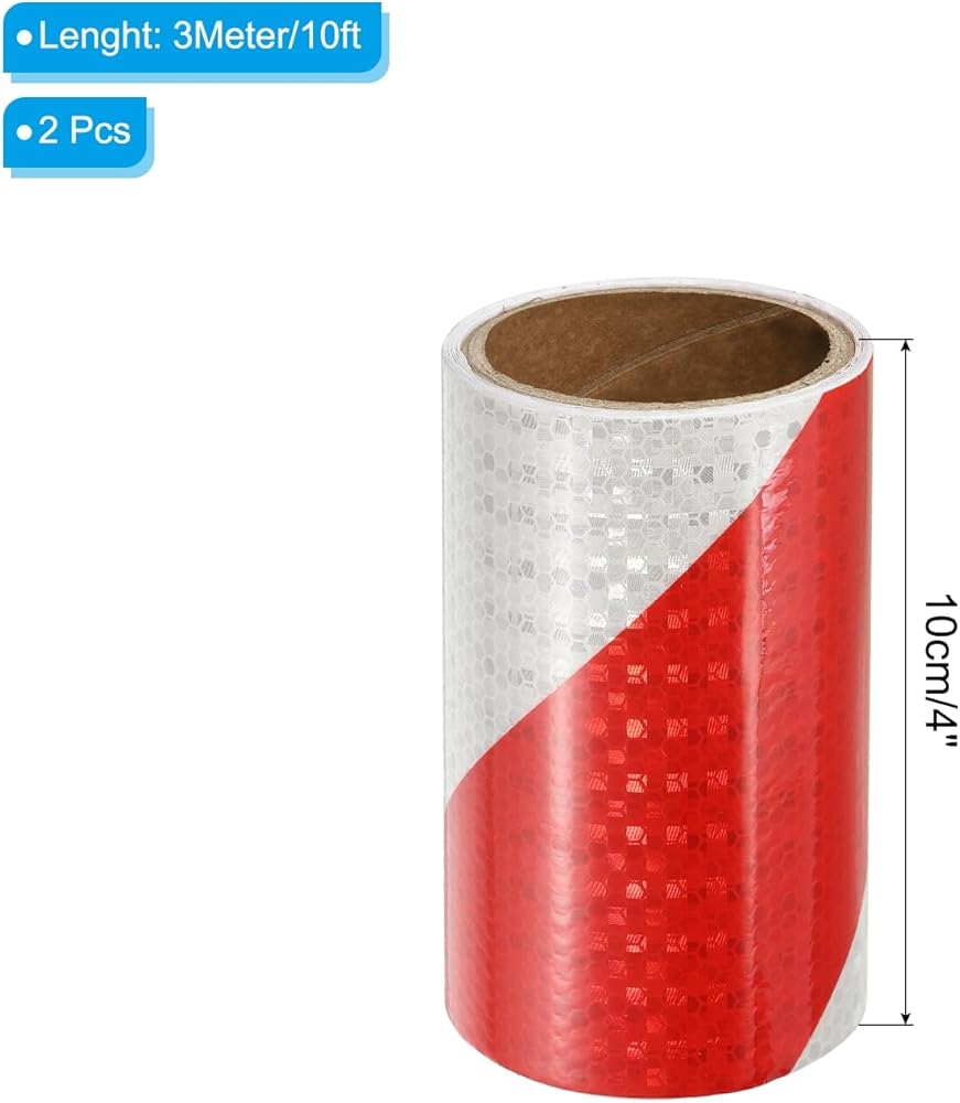 اللون: أحمر أبيض. الحجم الكلي: 3 متر × 15 سم / 10 قدم × 6 بوصة (الطول × العرض)؛ قائمة التعبئة: 2 × شريط عاكس