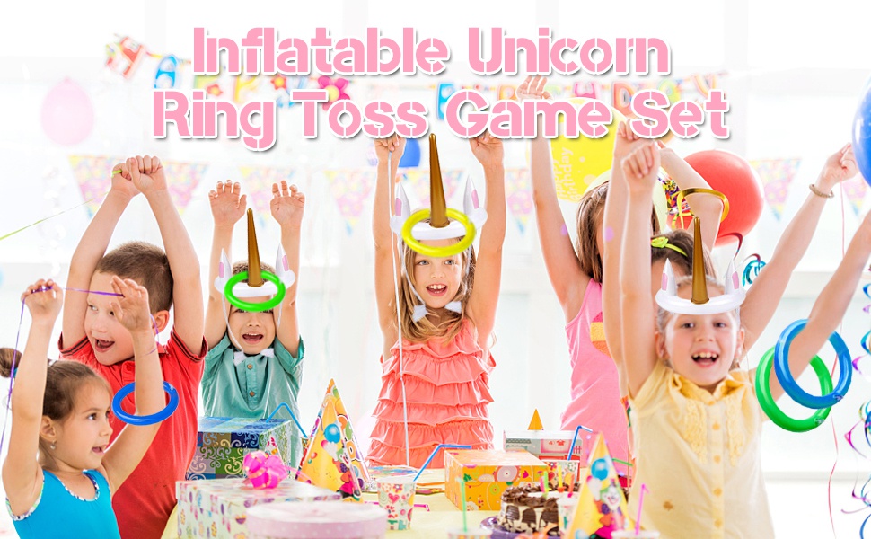 ألعاب حفلات جوليو يونيكورن، مجموعة ألعاب الرمي الدائري القابلة للنفخ تتضمن قطعتين يونيكورن و12 قطعة من حلقات الرمي، هدايا ألعاب الحفلات، عبوة من قطعتين