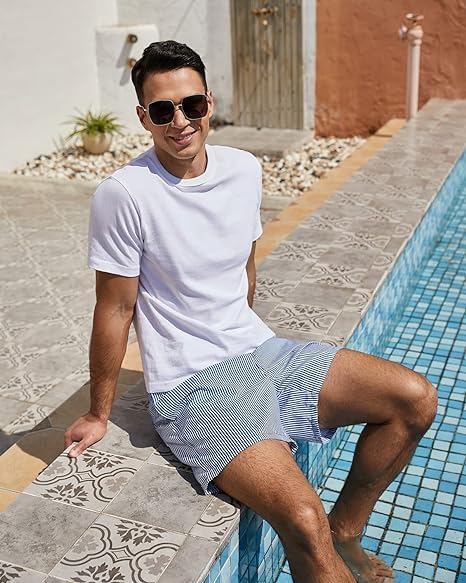 • 【Mens Swim Trunks】Summer beach drawstring shorts with practical side pockets and back pocket, perfect for carrying essentials such as mobile phones, keys or sunglasses.It is an essential item for men's summer wardrobe