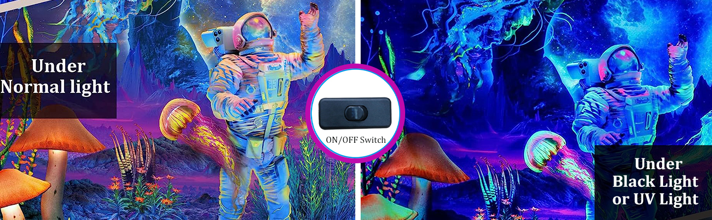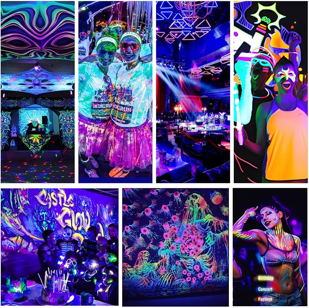 [استخدام واسع]: الأضواء السوداء مثالية لديكورات الهالوين، والحفلات المتوهجة في الظلام، وملصقات الإضاءة السوداء، وحفلات عيد الميلاد، وطلاء الجسم، والخزائن.