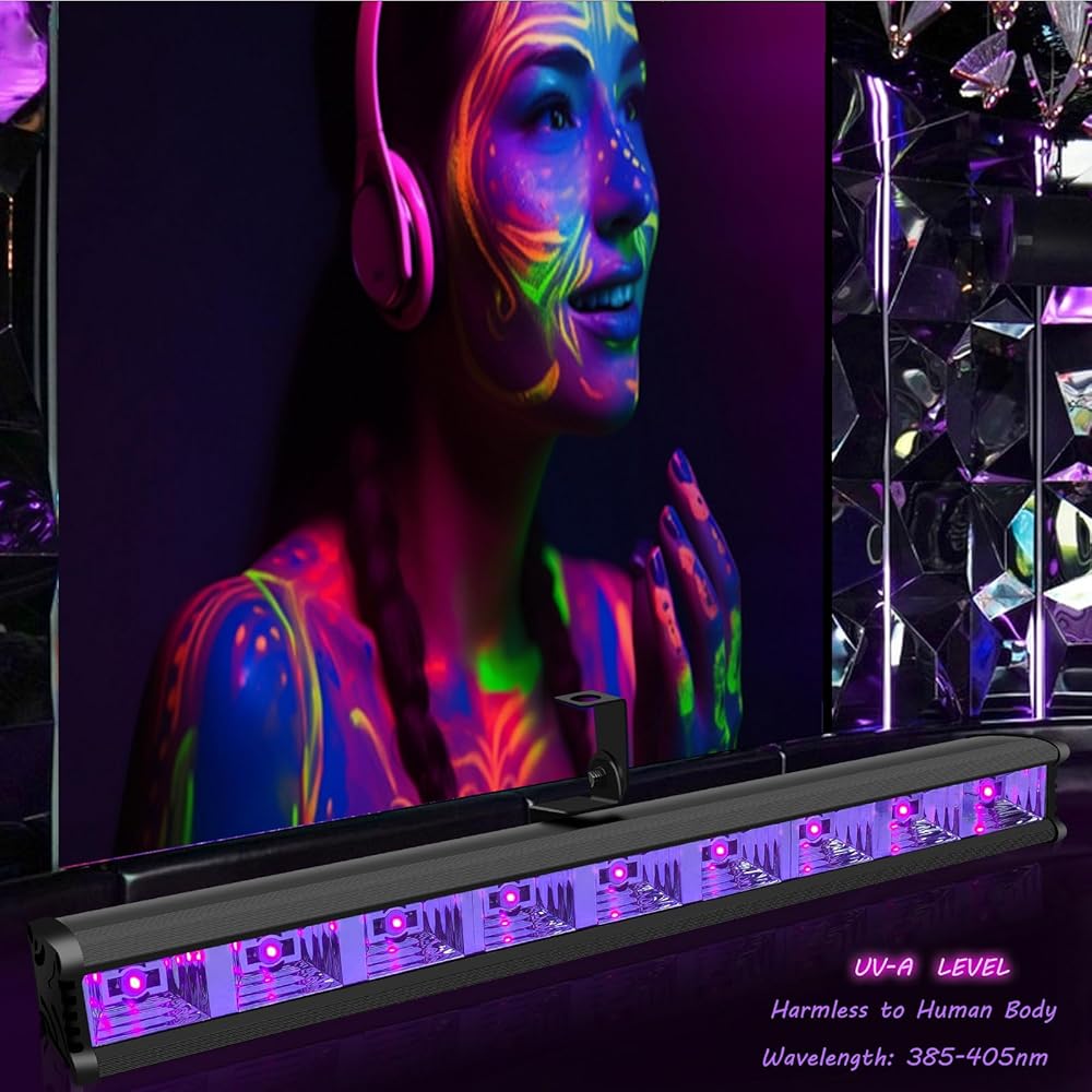 [السلامة]: شريط الضوء الأسود مجهز بـ 9 مصابيح LED فائقة السطوع. كل ضوء أسود له طول موجي 395-405 نانومتر وهو آمن لجسم الإنسان وعينيه.