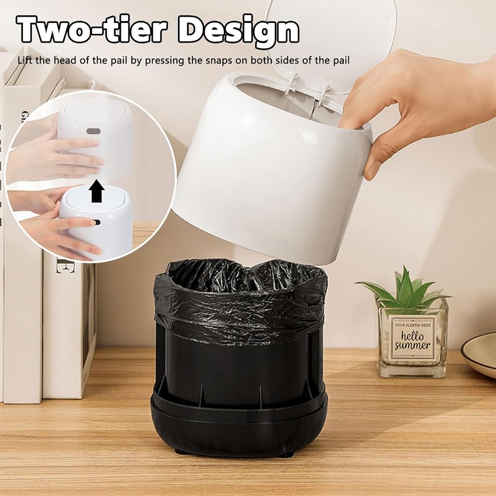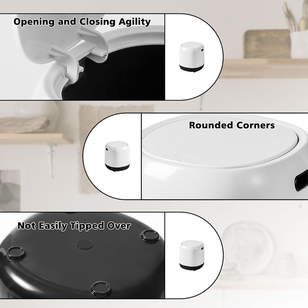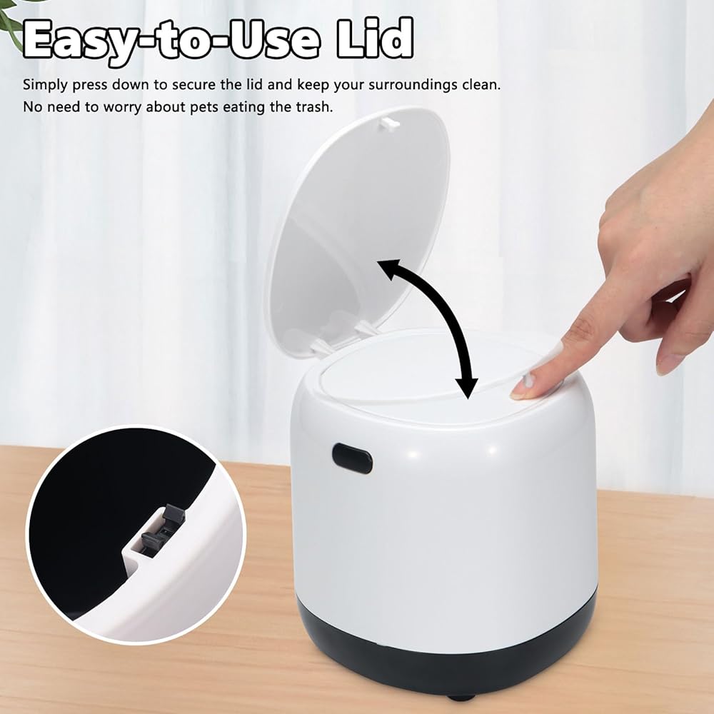 • 【غطاء سهل الاستخدام】 يمكن للغطاء بالضغط لهذه القمامة الصغيرة أن يضمن احتواء الفضلات ومنع التدفق الزائد. ما عليك سوى الضغط لأسفل لتأمين الغطاء والحفاظ على نظافة البيئة المحيطة بك. لا داعي للقلق بشأن تناول الحيوانات الأليفة للقمامة.