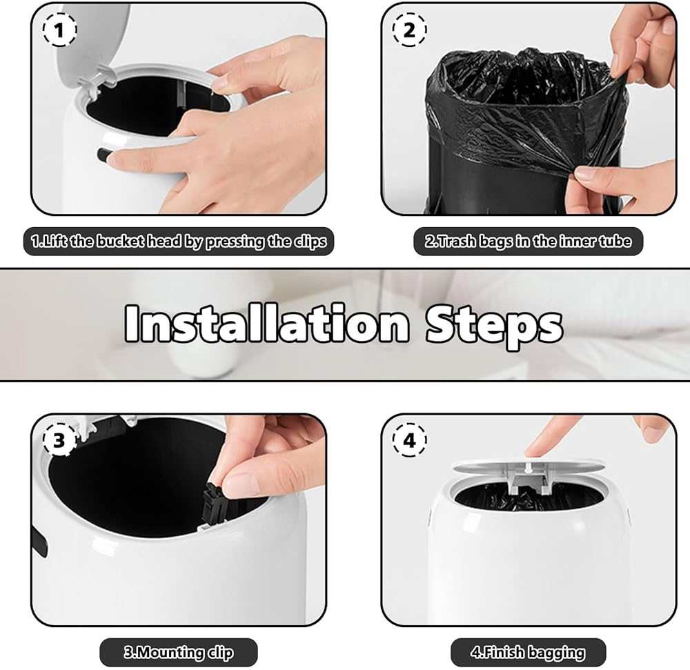 • 【تصميم البطانة】 بفضل تصميم البطانة، يمكن لهذه القمامة الصغيرة أن تجعل من السهل الحفاظ على كيس القمامة الخاص بك في مكانه بطريقة جمالية. لا مزيد من المعاناة مع الحقائب التي تنزلق أو تتمزق. استمتع بتجربة استبدال سهلة الاستخدام.