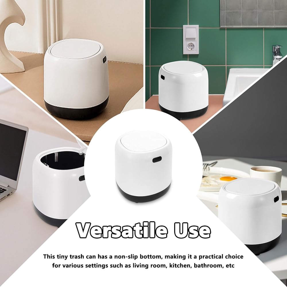سلة مهملات صغيرة مع غطاء من نوع الضغط، سلة مهملات للمكتب بسعة 0.5 جالون، سلة قمامة صغيرة، سلة مهملات صغيرة للحمام وغرفة النوم والمطبخ والمنزل وطاولة القهوة