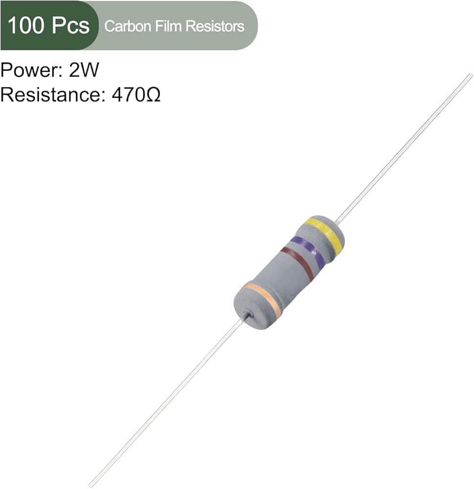 RELIABLE MATERIAL - 2 watt 470 ohm carbon film resistor with +/-5% tolerance, which has stable performance, a wide range of resistance, a small size, a high working temperature, and an ultimate high voltage.