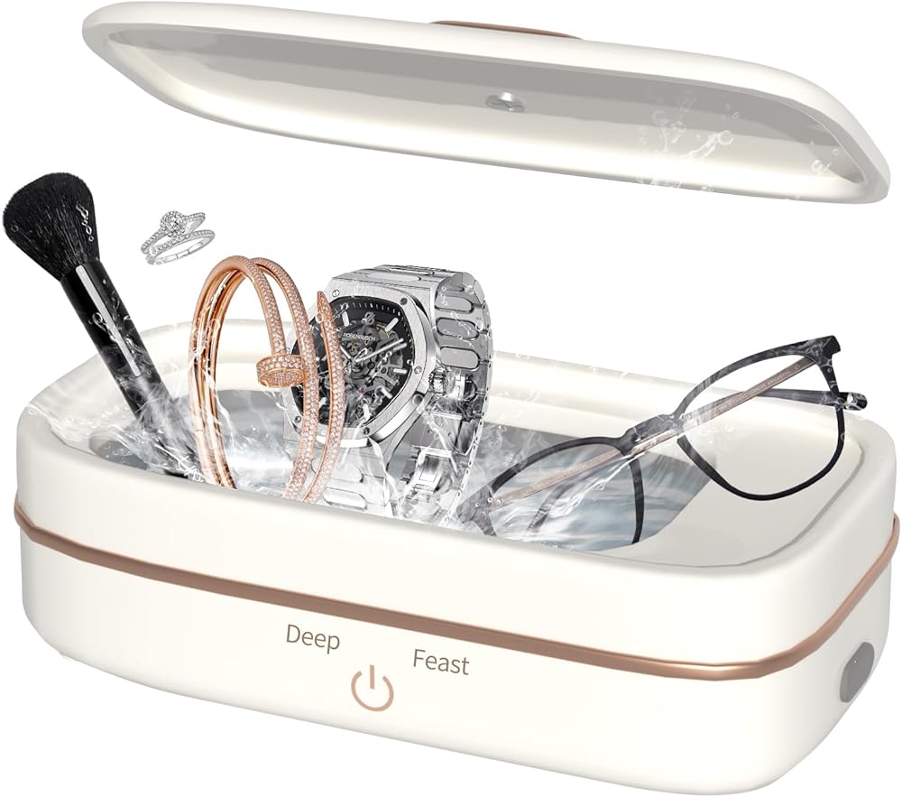 منظف المجوهرات بالموجات فوق الصوتية 48 كيلو هرتز، منظف المجوهرات بالموجات فوق الصوتية، منظف صوتي احترافي مع تشغيل بلمسة واحدة، منظف بالموجات فوق الصوتية للخواتم والنظارات والمجوهرات،