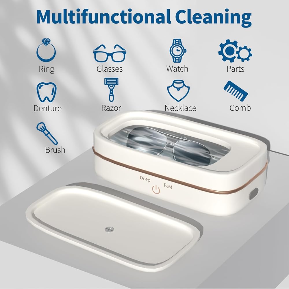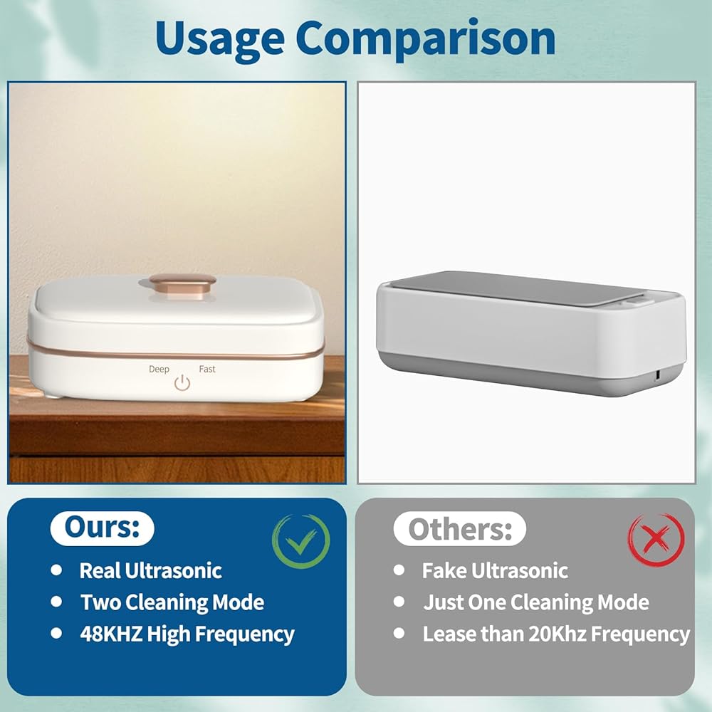 سهل الاستخدام: تم تصميم المنظف بزر واحد، وهو سهل الاستخدام للأشخاص من جميع الأعمار والمهارات التقنية. وهذا يجعل التنظيف بالموجات فوق الصوتية مهمة واضحة ويمكن الوصول إليها لجميع أفراد الأسرة.