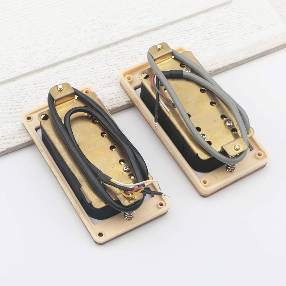 غيتار مزدوج لفائف هامبوكر التقاطات الرقبة والجسر مجموعة استبدال لأجزاء الغيتار الكهربائي LP، اللؤلؤ الأبيض والذهبي