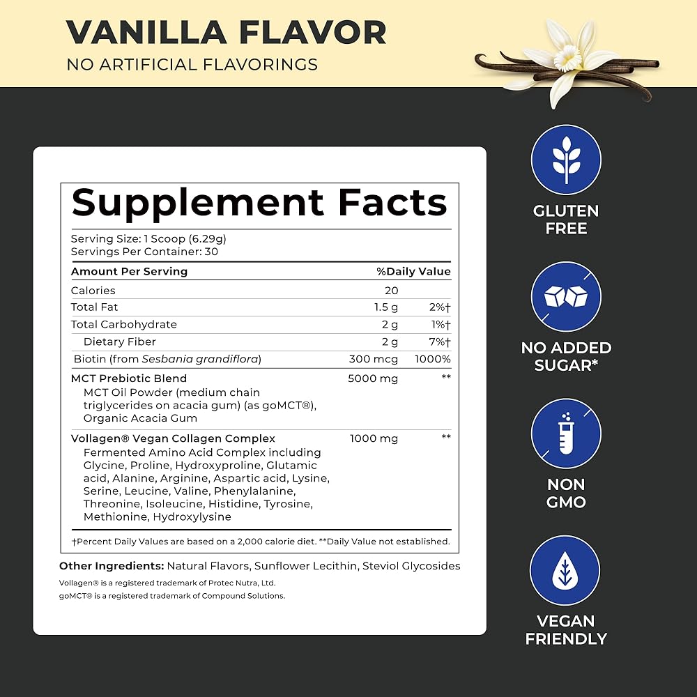 تعزيز صحة التمثيل الغذائي والأمعاء: مزيج MCT Prebiotic في ذروة MCT والكولاجين يجمع بين الأحماض الدهنية متوسطة السلسلة من النخيل وجوز الهند مع ألياف صمغ السنط. يدعم هذا المزيج الديناميكي إنتاج طاقة الكيتون، مما يوفر مصدر طاقة بديل وقوي لكل من الدماغ والعضلات.