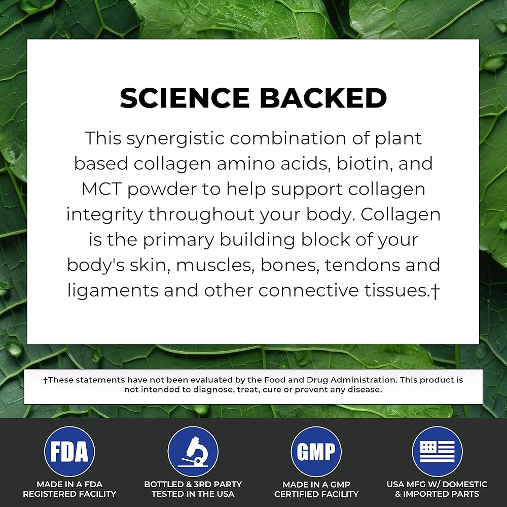 أحماض الكولاجين الأمينية المدعمة بالنباتات: على عكس الكولاجين التقليدي من مصادر حيوانية، فإن الفولاجين نباتي بالكامل. يوفر الأحماض الأمينية الأساسية بنسب تعكس الكولاجين البشري، مما يعزز سهولة الامتصاص ويساعد في إنتاج الكولاجين في الجسم. وهذا يعني أنك تحصل على فوائد الكولاجين دون أي أصل حيواني أو معالجة معقدة.