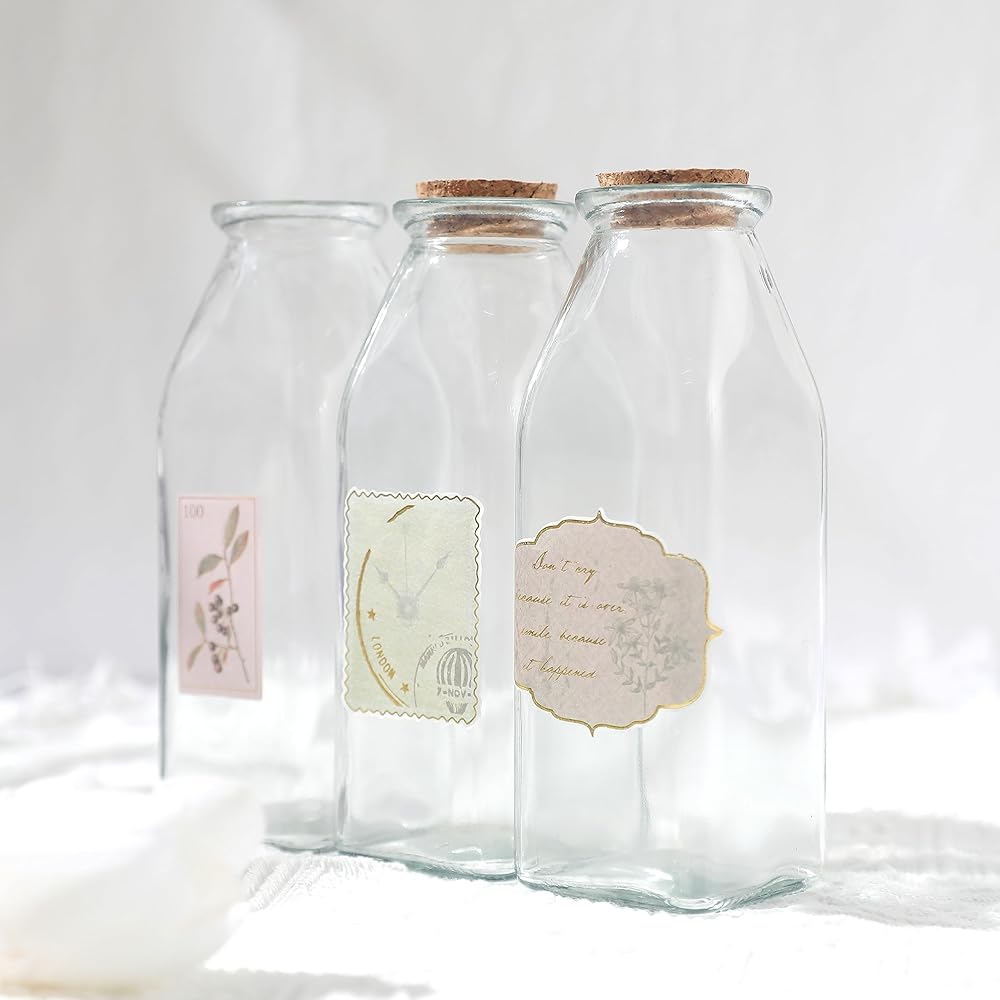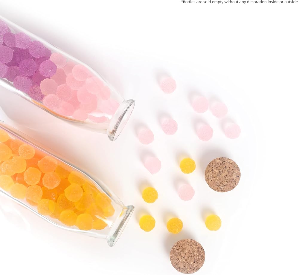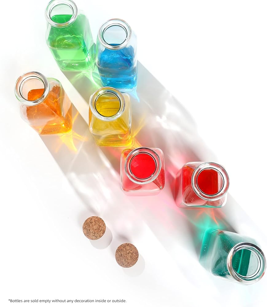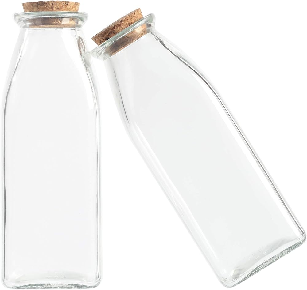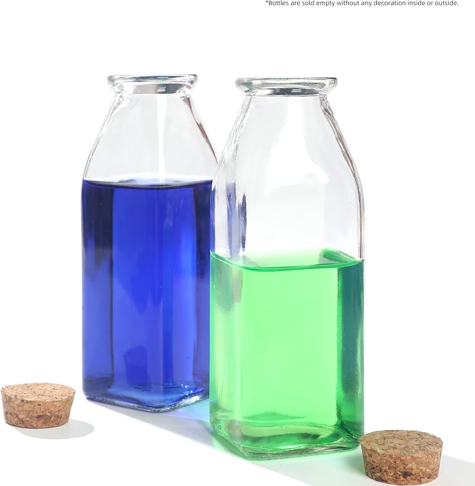 زجاجة زجاجية مزخرفة من ماجيك سيزون مع سدادات من الفلين (زجاجات مربعة سعة 11 أونصة / قطعتين)