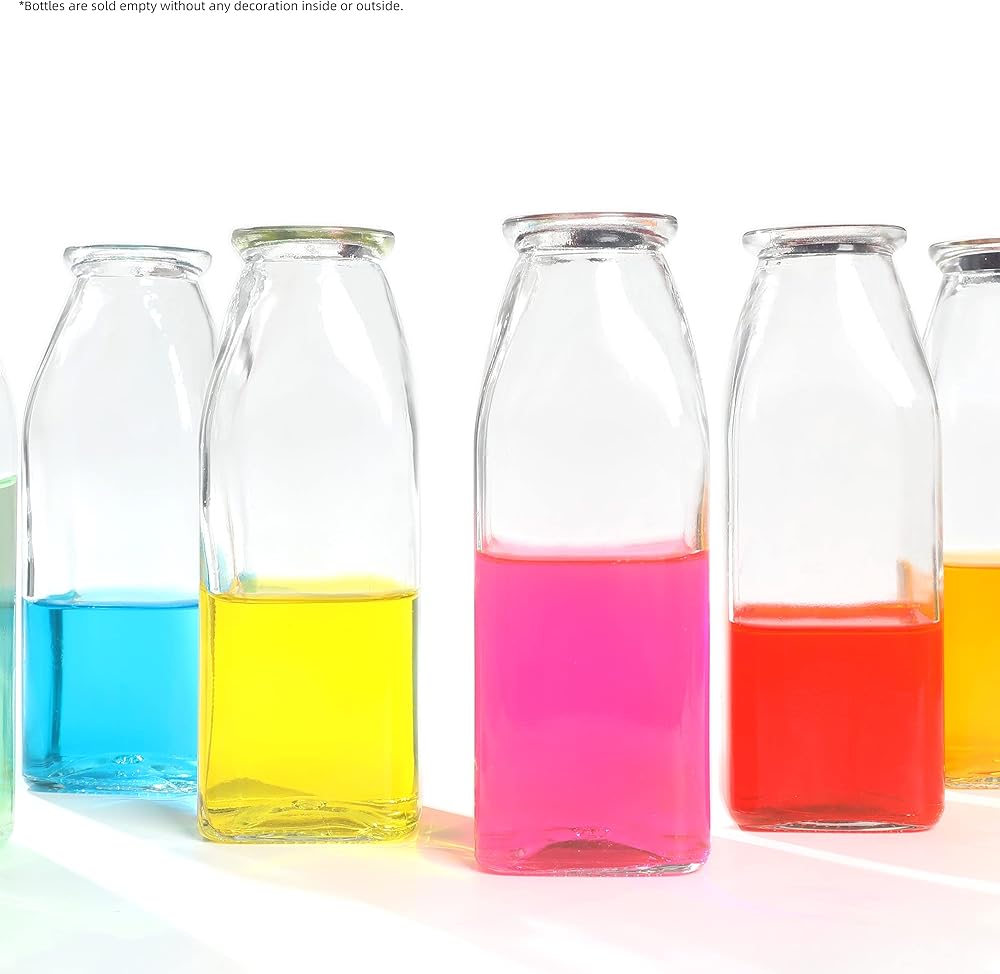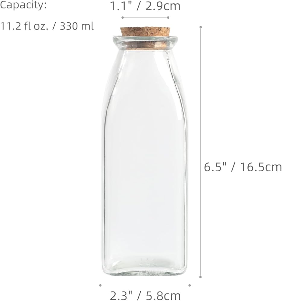 Magic Season Decorative Glass Bottle with Cork Stopper (11 oz. Square Bottles / 2 Pcs)