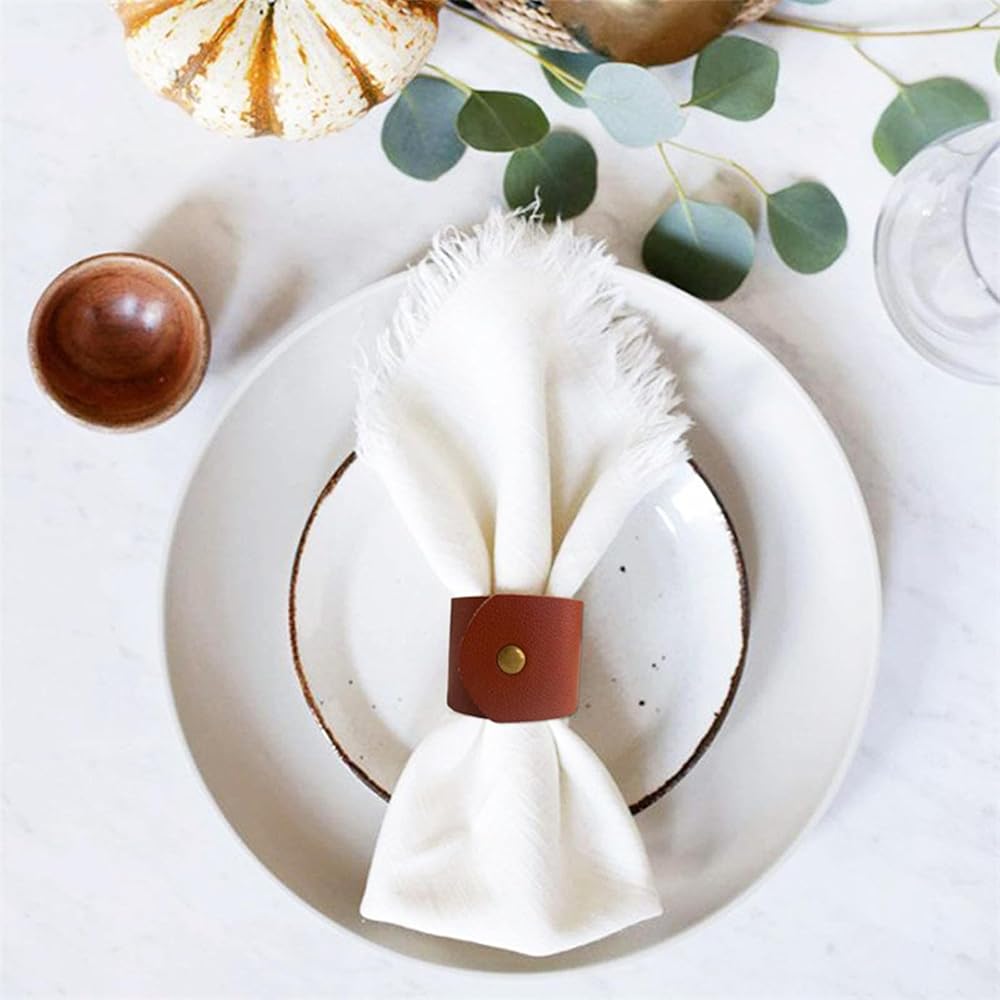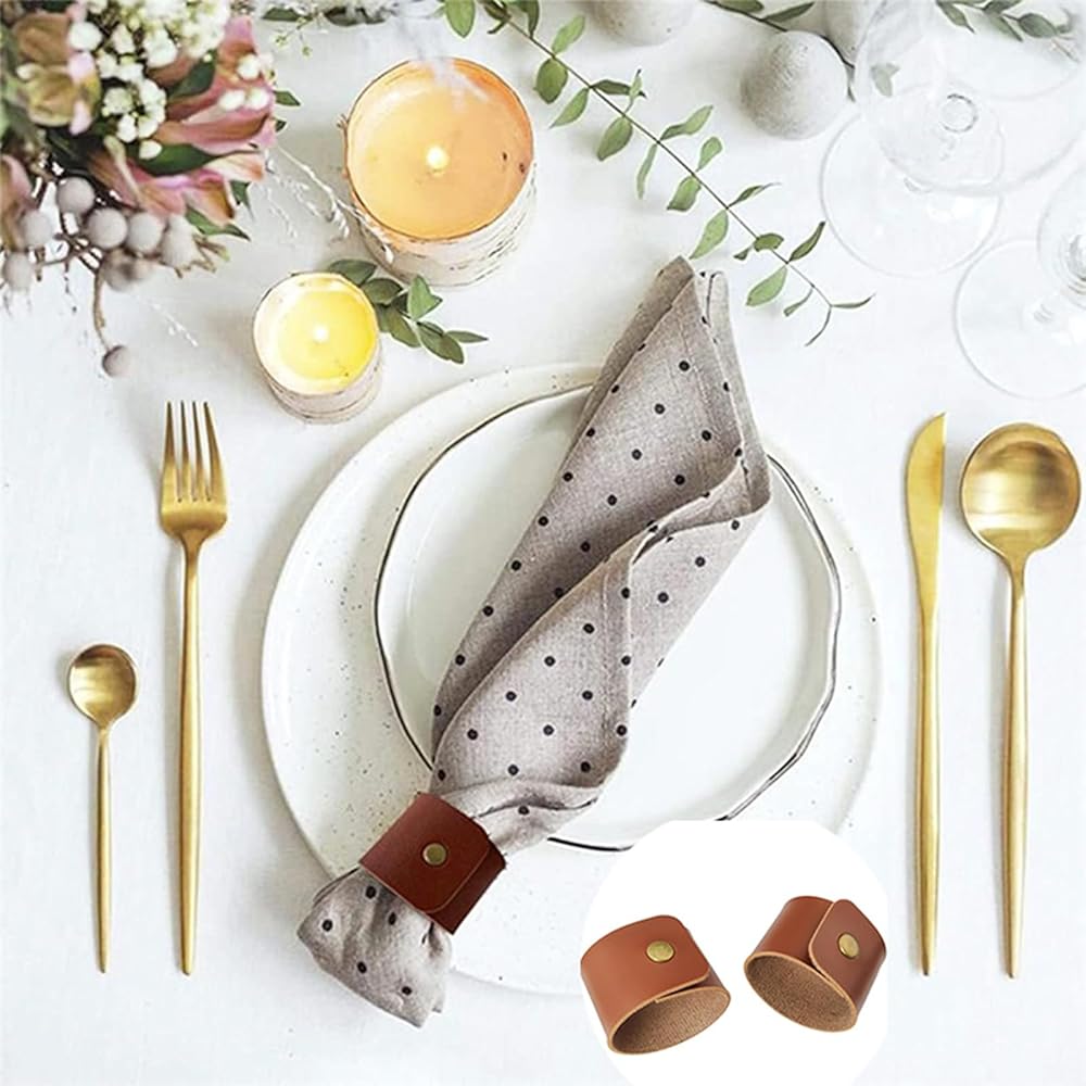 🎁【Premium Material】-- Leather napkin rings are hand-cut and using the highest quality of leather. The quality of this leather ensures a long-lasting life and durability. Set the scene for your dinner party or get-together with a set of handmade napkin rings.