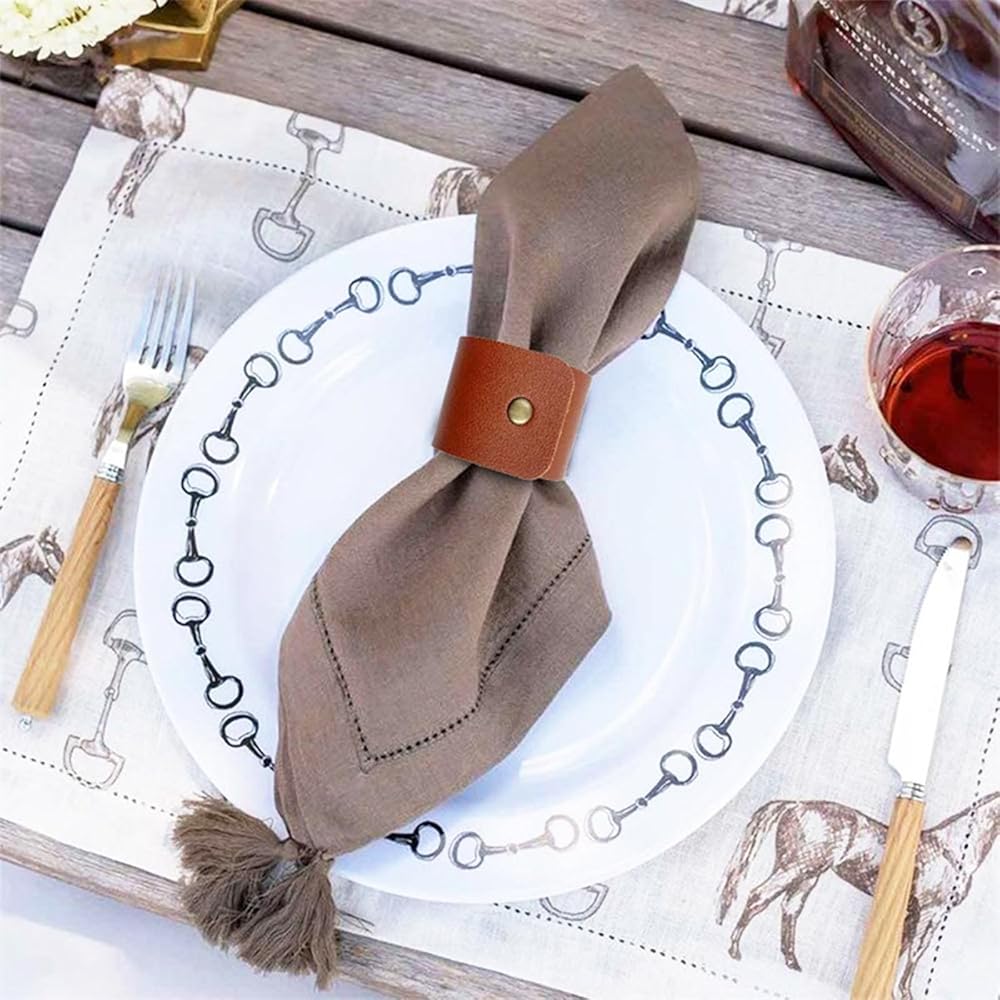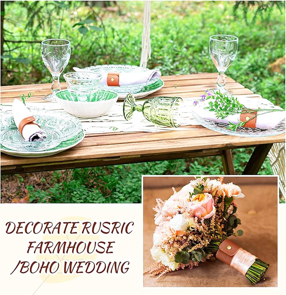 🎁【Delicate Craftsmanship】-- Each one of the rustic, durable leather napkin rings is made with care and craftsmanship, with every item handmade to the highest standard. Quality means the color won't for t fade onto white napkins or in the washer.