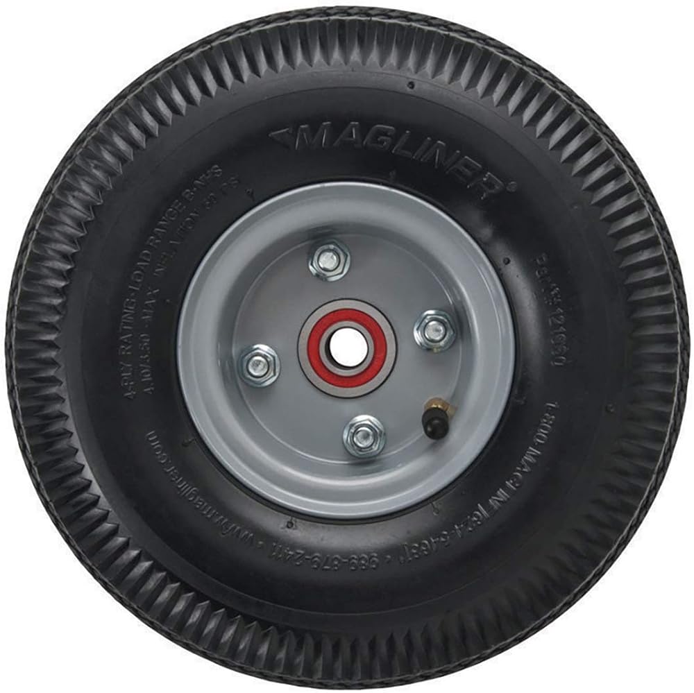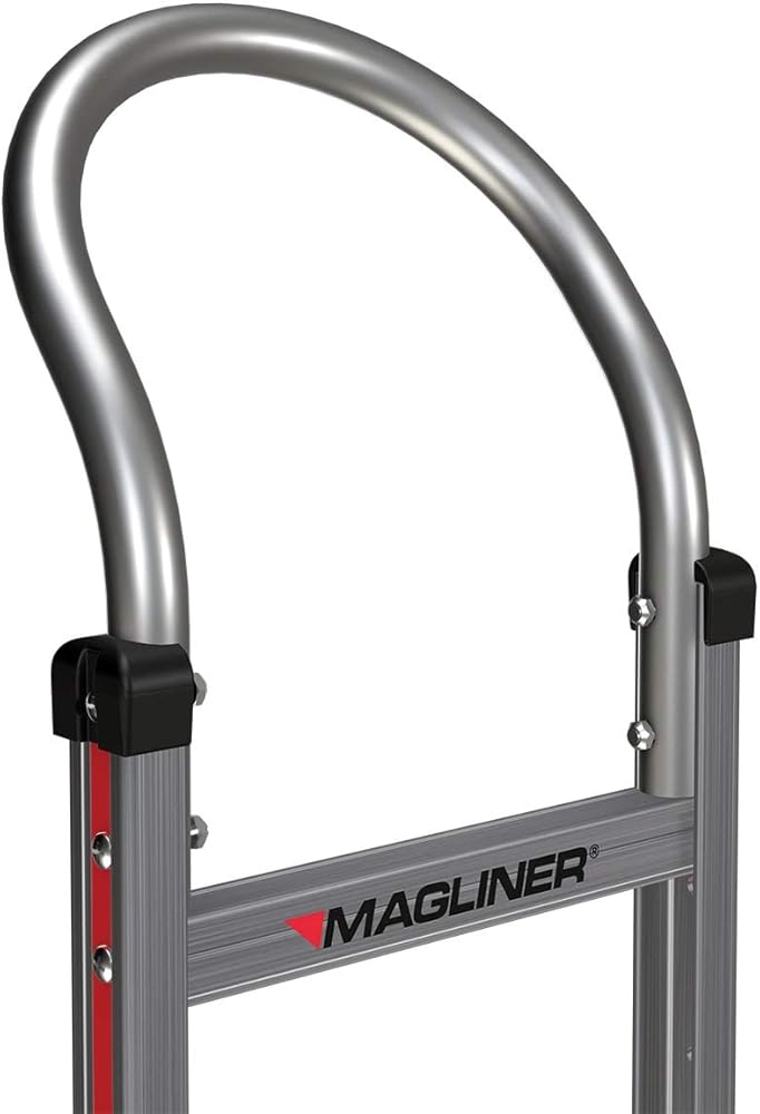 The Magliner HMK111UA4 aluminum hand truck has a straight back frame, vertical loop handle, diecast aluminum nose plate, 10" 4-ply pneumatic wheels and a 500 lb. load capacity. The hand truck's frame and nose plate are made of aluminum, which weighs less than steel and is resistant to rust and corrosion. The wheels on the hand truck are tube-type 4-ply pneumatic and have semi-precision bearings to help reduce friction and support the load. This hand truck requires assembly; instructions and hardware for assembly are included, tools for assembly are sold separately. Hand trucks, also known as two-wheeled dollies, are used to transport heavy or bulky items, especially in commercial product distribution and delivery. Hand trucks are L-shaped, with handles at the top, two wheels at the bottom and a small platform that touches the ground when the truck is upright. A load is placed on the platform and the truck is tilted back, balancing the weight over the wheels. Powered hand trucks have a platform that lifts the load up, or lowers it down, to reduce human labor. Some hand trucks may be convertible to platform trucks for moving large or cumbersome loads. Others fold flat for storage. Magline manufactures Magliner brand hand trucks, dollies, ramps and other products for material handling applications.