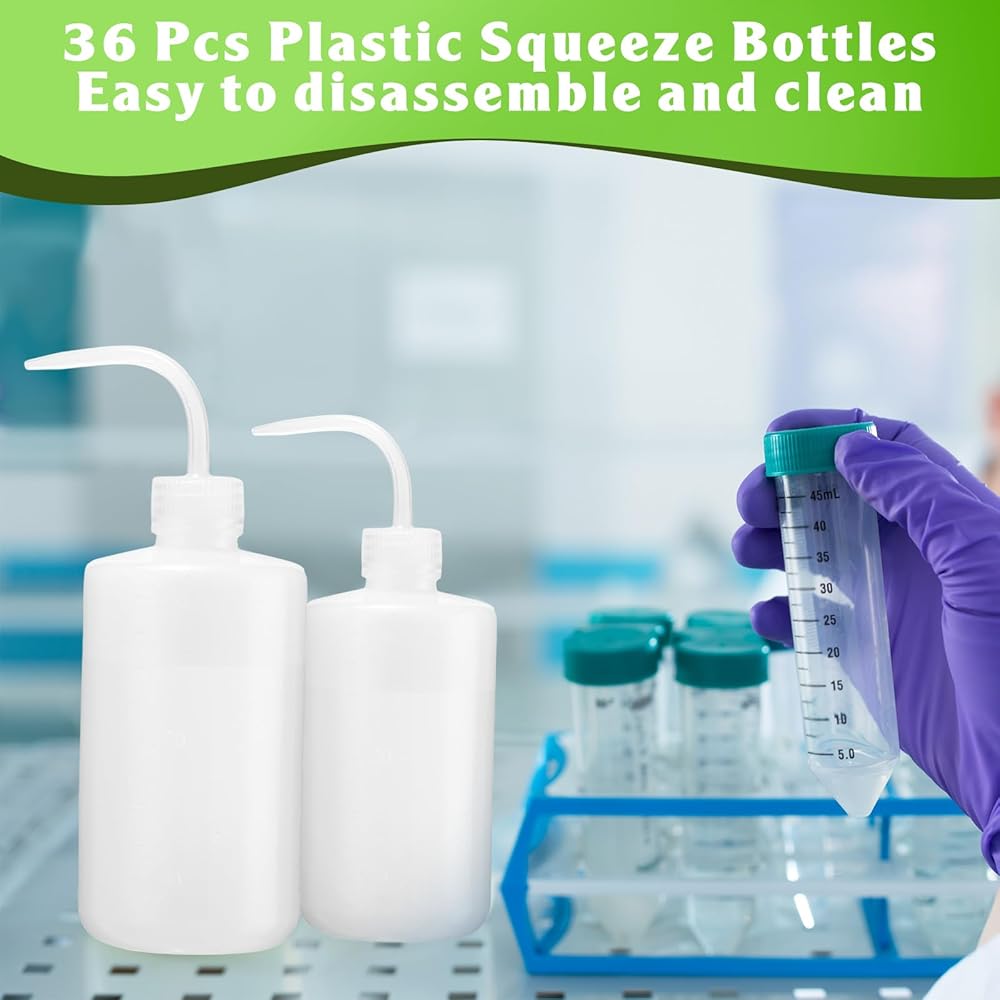 Sufficient to Use: there are 36 pieces of science lab spray bottles in the package, come in 3 different liquid capacity, including 150ml/ 5oz, 250ml/ 8.5oz, 500ml/ 17 oz, 12 pieces for each; Tight seal and leak proof design, with polypropylene screw cap, angled stem and pull tube integrally formed; And the narrow tip allows for precise watering and cleaning