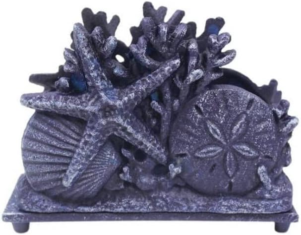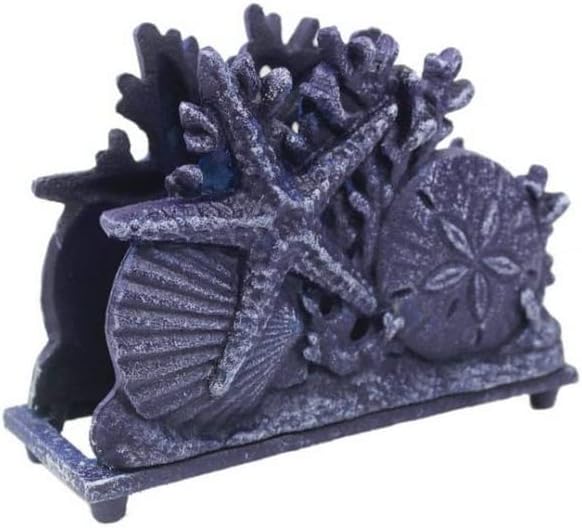 This Rustic Dark Blue Cast Iron Seashell Napkin Holder 7 inch is perfect for any nautical inspired kitchen or dining room. It adds charm to any nautical room, while impressing your guests with their substance and thoughtfulness. Ideal for napkins, this durable napkin holder is crafted from cast iron. Easily mountable, display this decorative holder to show those who visit your home the affinity for the sea-faring lifestyle.NOTE: Wall mounting hardware not included. Excellent seashell decoration Functional and decorative Napkin Holder Solid and heavy -Â handcrafted from cast iron