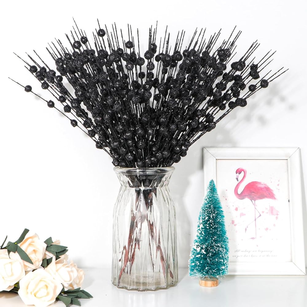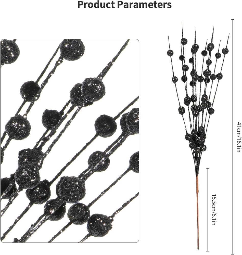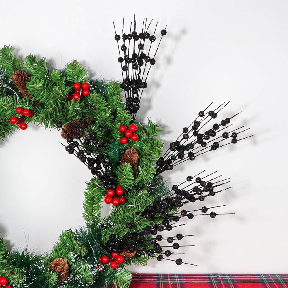 • High Material: The artificial black berries are made from high quality iron wire, foam ball, and the surface coveblack with a layer of glitter powder. The berry twigs are designed by wire. You can easily shape and arrange them to your liking.