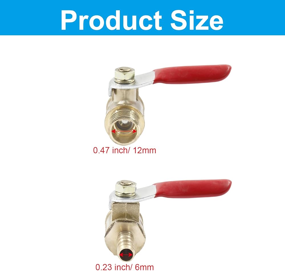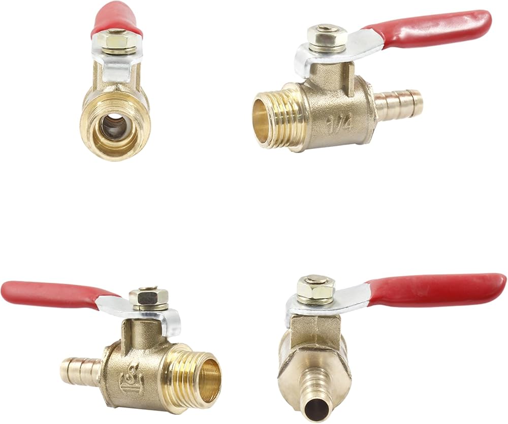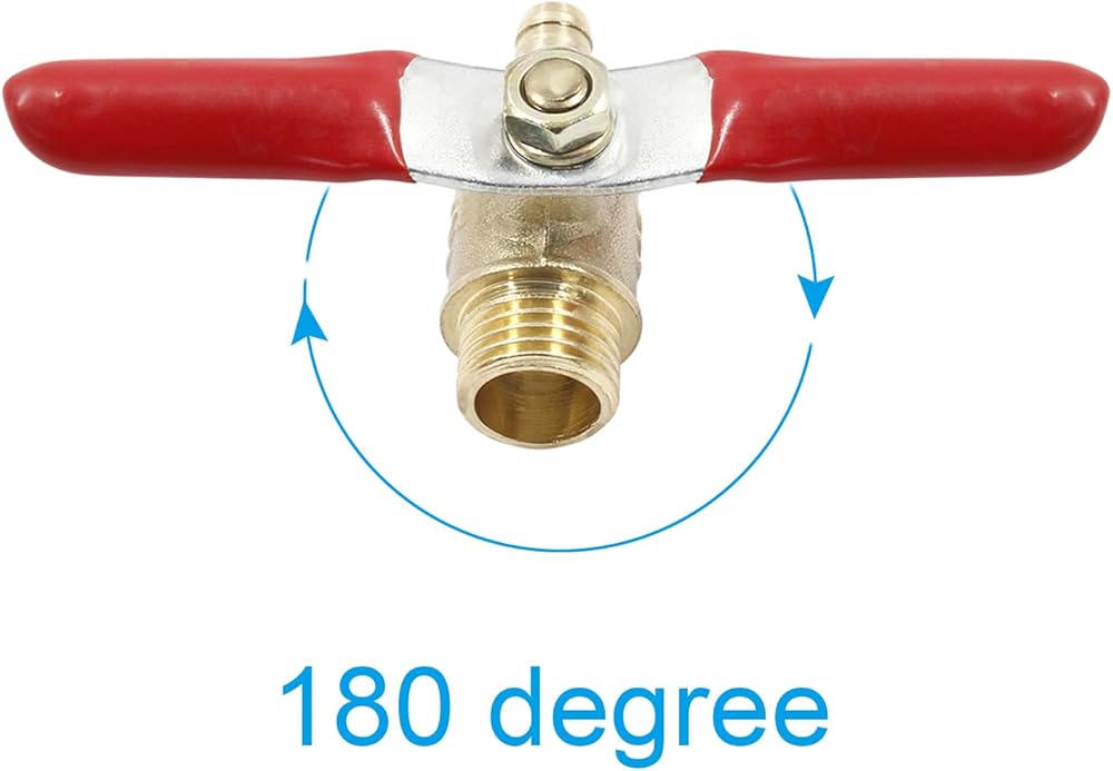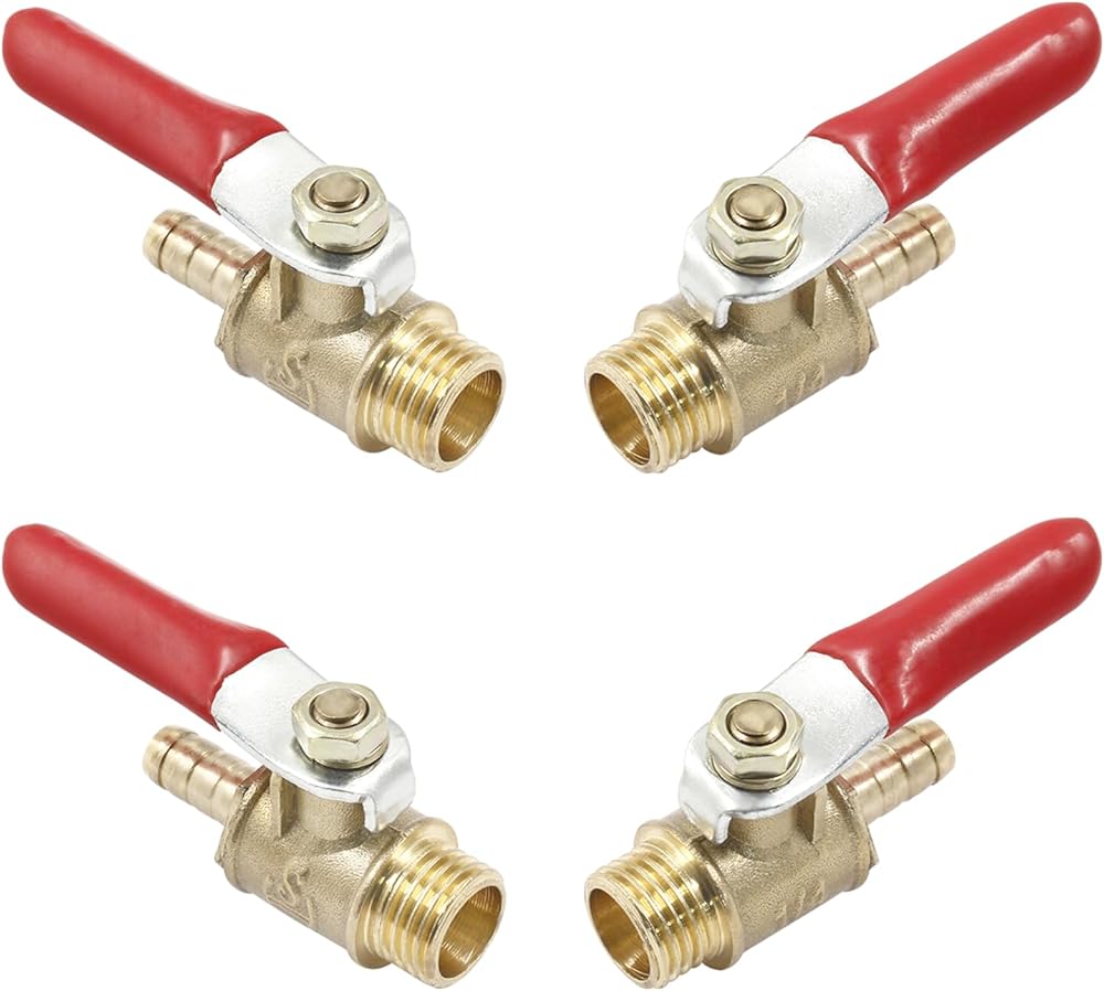 Aracombie 4 PCS 1/4 Inch Mini Ball Valve, 12mm NPT Male Thread x 6mm Inch Hose Barb Pipe Tubing Fitting Coupler, Brass Ball Valve With 180 Degree Operation Handle