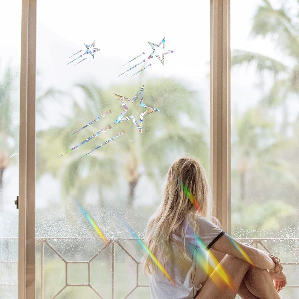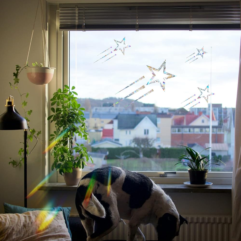 ملصقات نافذة Shooting Star، ملصقات نافذة Bird Strike - ملصقات نافذة من الفينيل غير لاصقة مضادة للتصادمات - حماية الطيور وحفظها من الاصطدام بالنوافذ - تأثير قوس قزح، JD-LXING-12