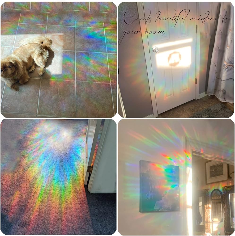 • 【ملصق نافذة صانع قوس قزح】- لا يمكن استخدام هذه الملصقات ذات التصميم المنشوري لإنقاذ الطيور فحسب، بل تعمل أيضًا كديكور رائع لنافذة المنزل والمكتب واليوجا. يمكنها أن تعكس ضوء الشمس وتخلق قوس قزح جميل في غرفتك.