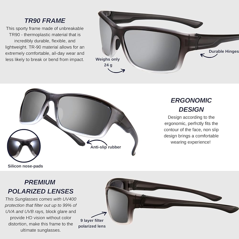 ☑️Versatile Men's Sunglasses: Our womens sports sunglasses are not just an accessory; it's a necessity. Meet your new active lifestyle partner! It's great for sports, fishing, cycling, driving, running, golf and more.