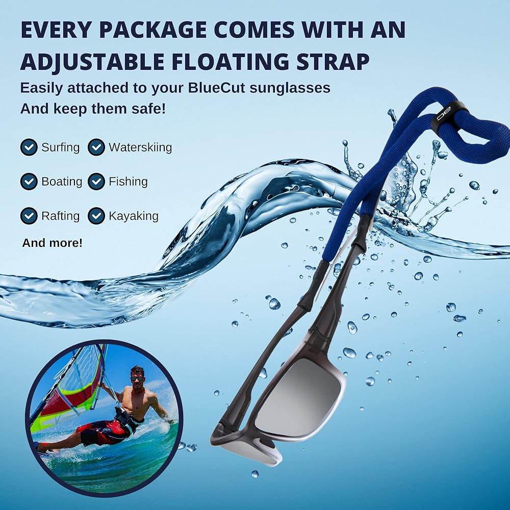 ☑️ Ultralight & Snug Fit Sunglasses: The flexible and anti-slip silicone nose pads offer a comfortable fit. Complete with a floating strap, so you won't lose your sunglasses even when you go into the pool.