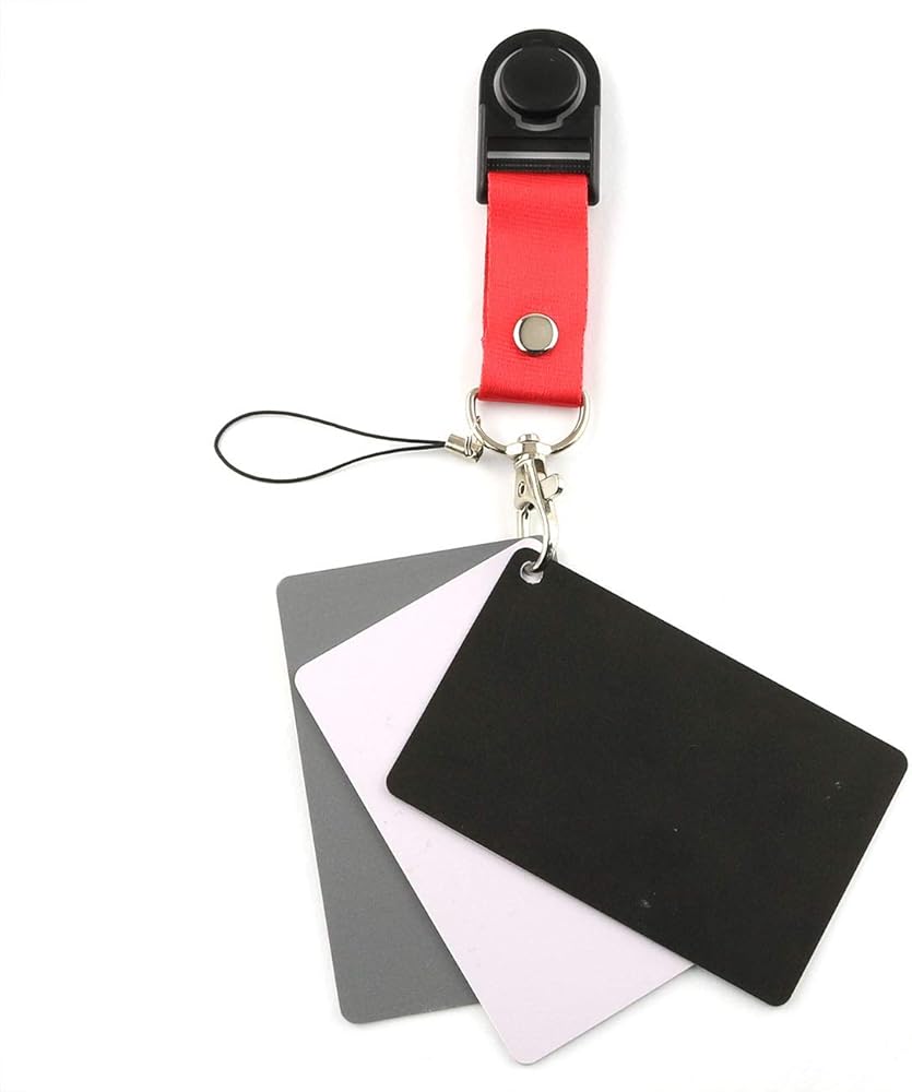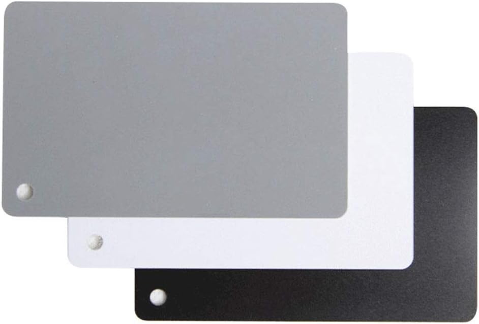 تشمل العبوة: 3 بطاقات معايرة ألوان صغيرة محمولة (بطاقة سوداء وبطاقة بيضاء وبطاقة رمادية 18%) وحبل قابل للفصل، وهو مريح جدًا في الاستخدام.