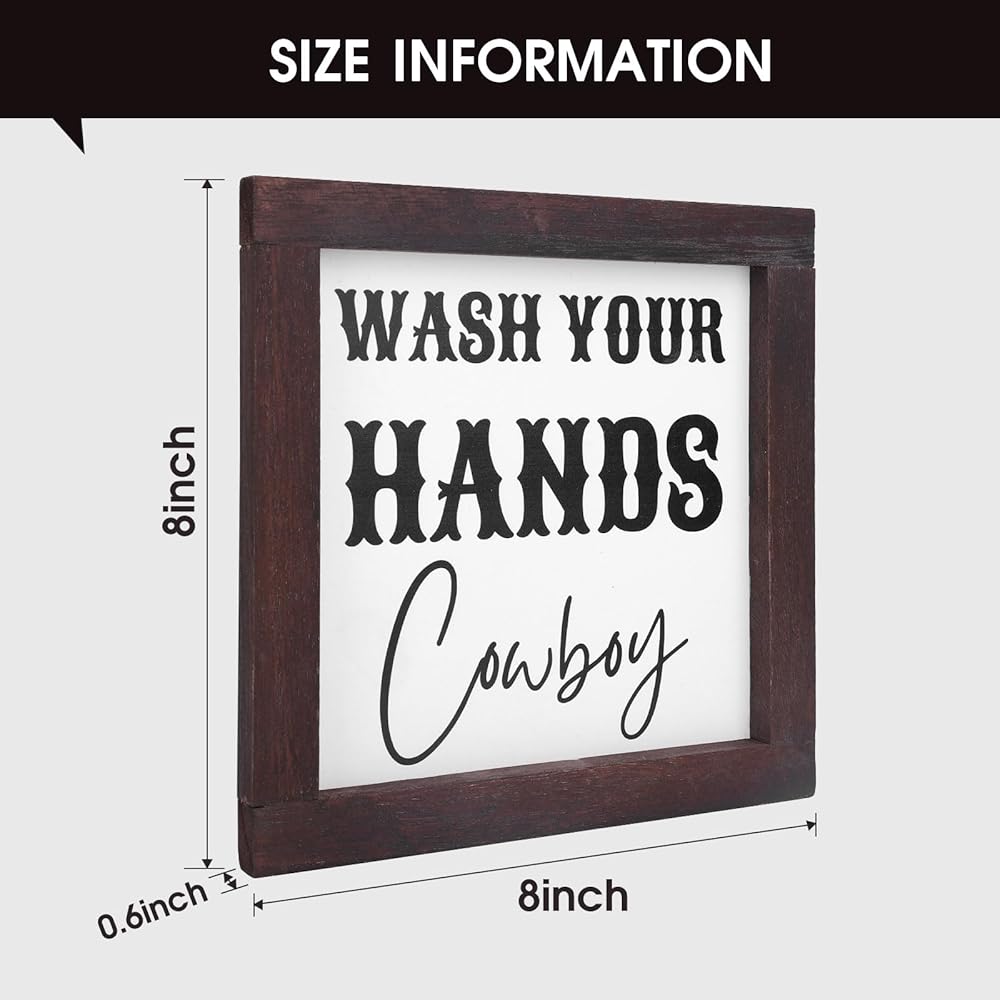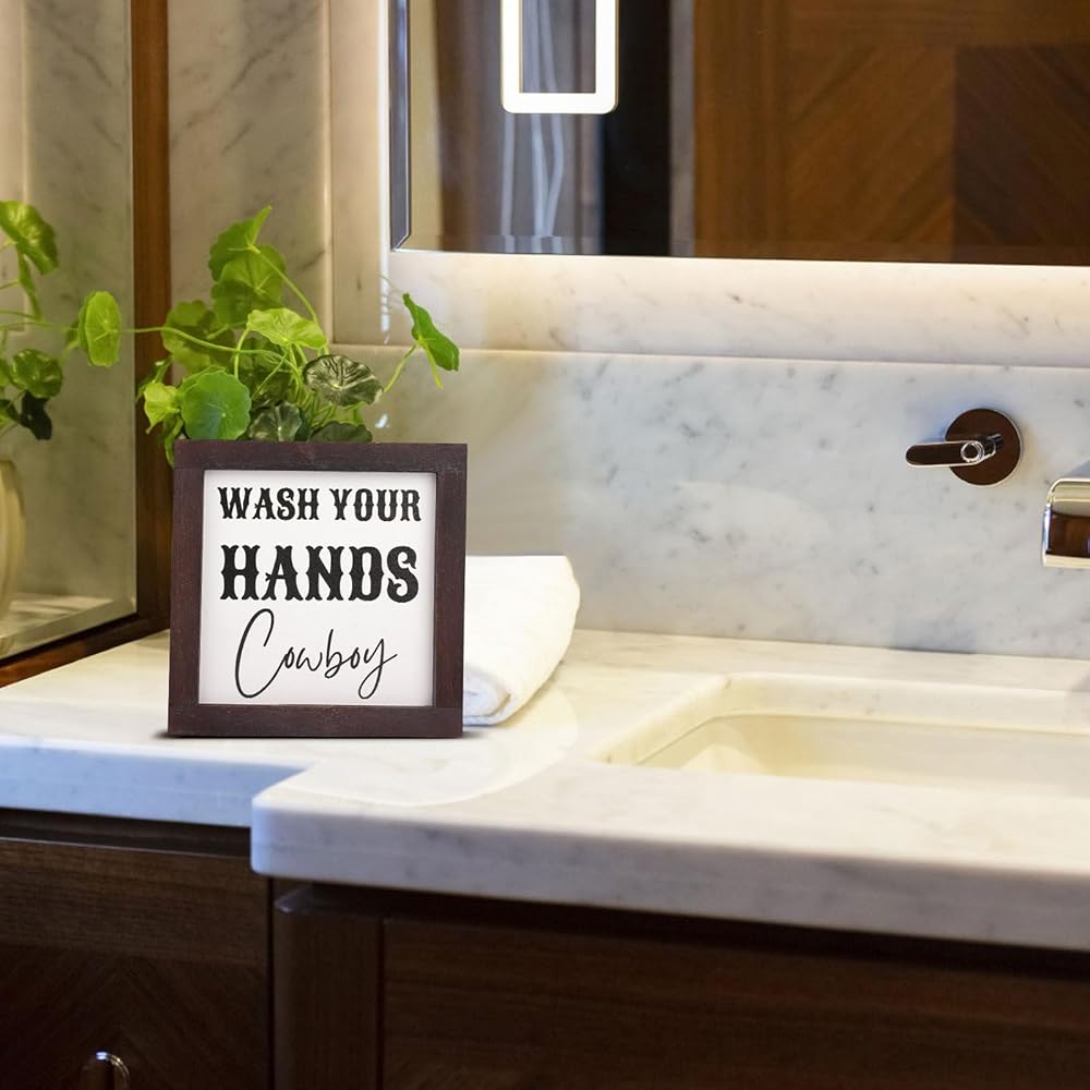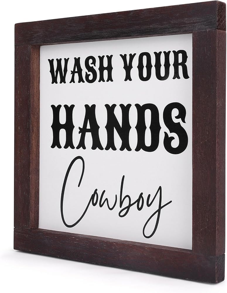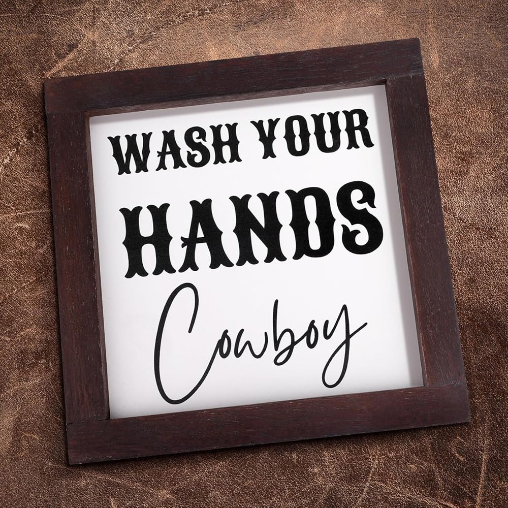 ديكور الحمام الغربي مؤطر، اغسل يديك ديكور حمام رعاة البقر، علامة تزيين المزرعة للحمام، ديكور ريفي حديث لرف مرحاض المرحاض