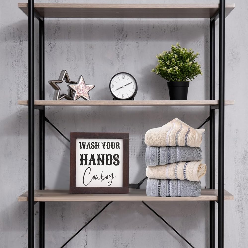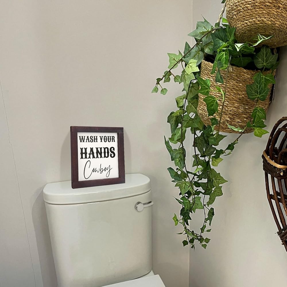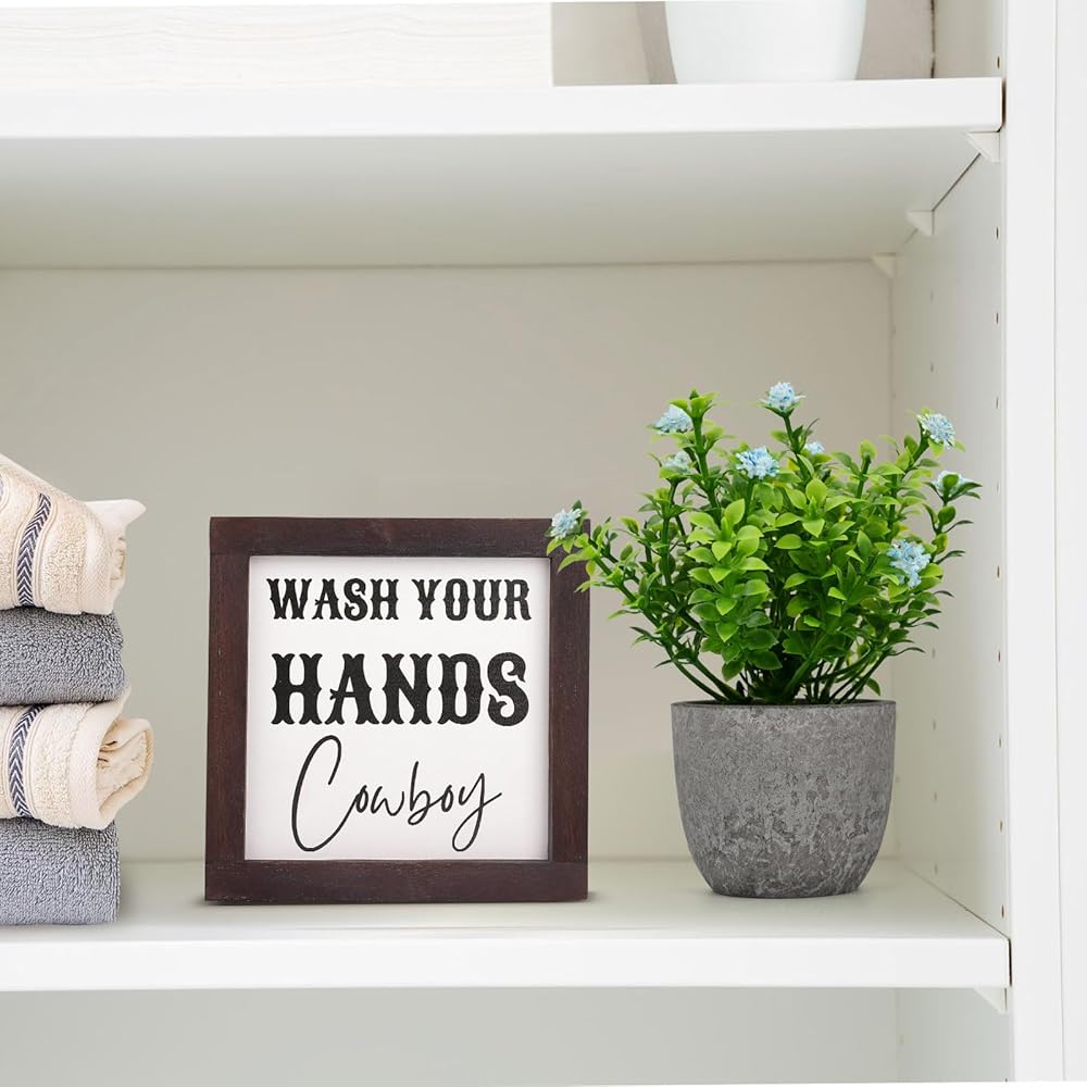 ديكور الحمام الغربي مؤطر، اغسل يديك ديكور حمام رعاة البقر، علامة تزيين المزرعة للحمام، ديكور ريفي حديث لرف مرحاض المرحاض