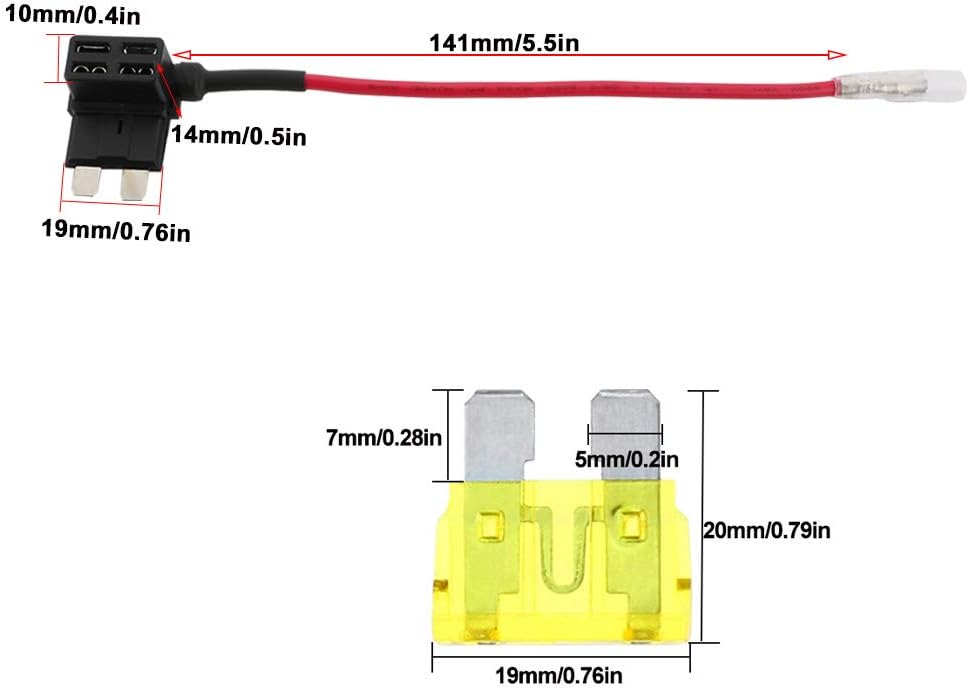 ✪ Premium Material: ACU medium fuse holder, 16 AWG wire lead is made of good quality ABS & copper wire, for new circuit adding additional fuse. Tin-plated zinc terminals for corrosion resistance and enhanced conductivity, protect your vehicles and your electrical device from a short circuit and overload.
