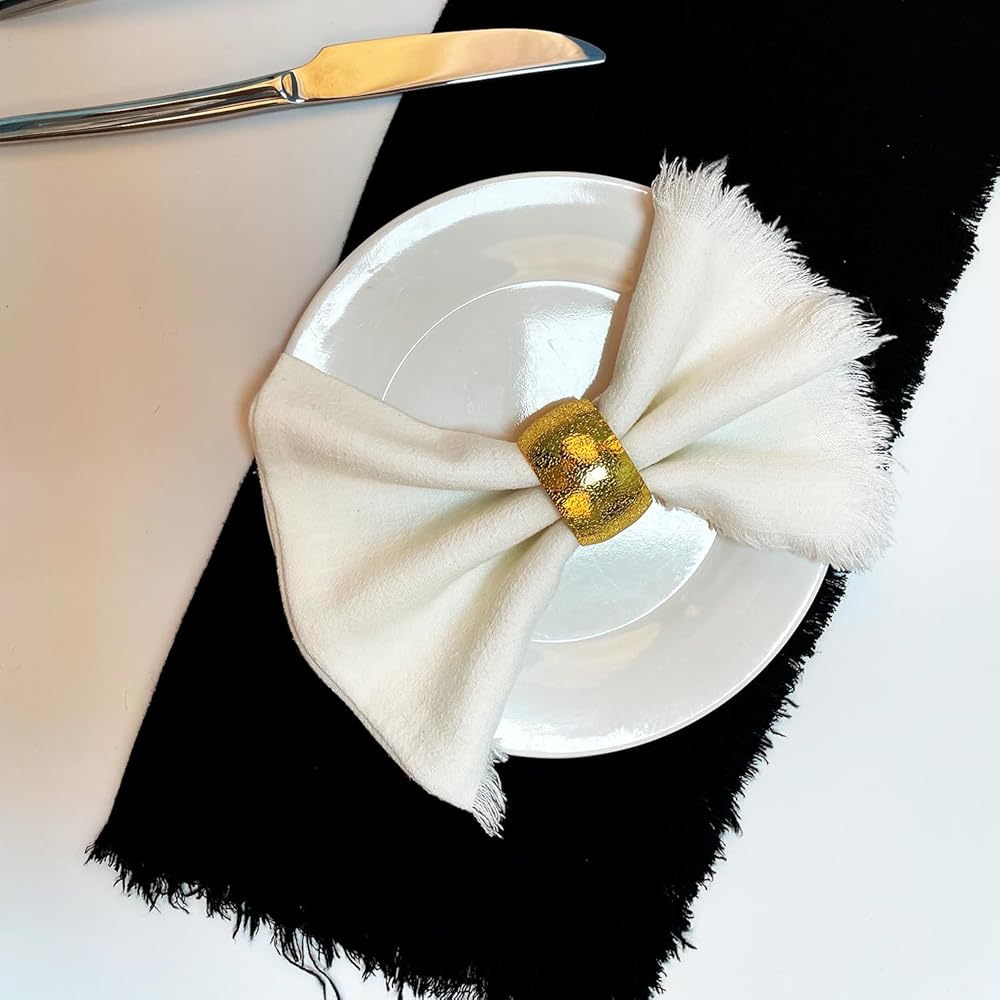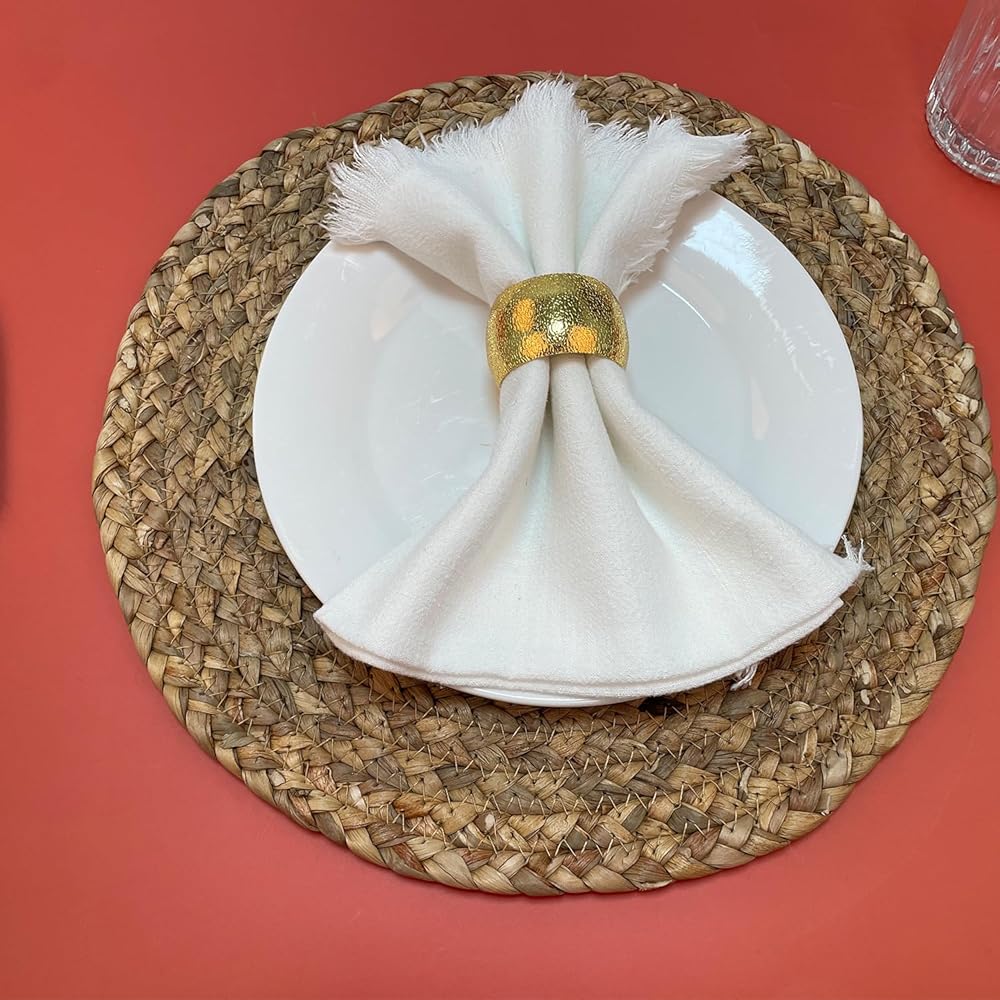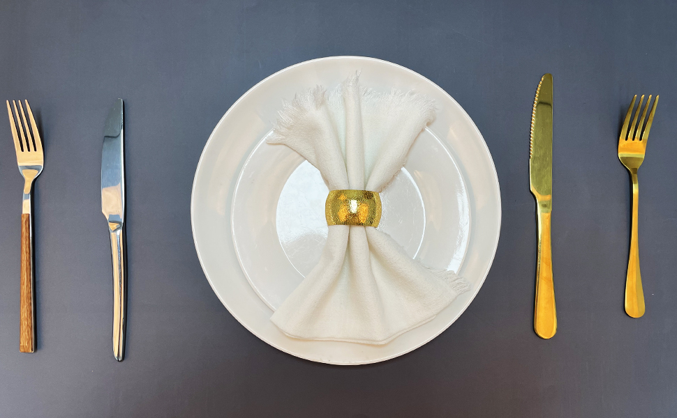 【سهلة التنظيف】: خاتم العشاء الذهبي هذا مصنوع من الزنك سهل التنظيف، إذا كان متسخًا، فيرجى مسحه بإسفنجة مبللة أو قطعة قماش مبللة ووضعه في مكان نظيف.