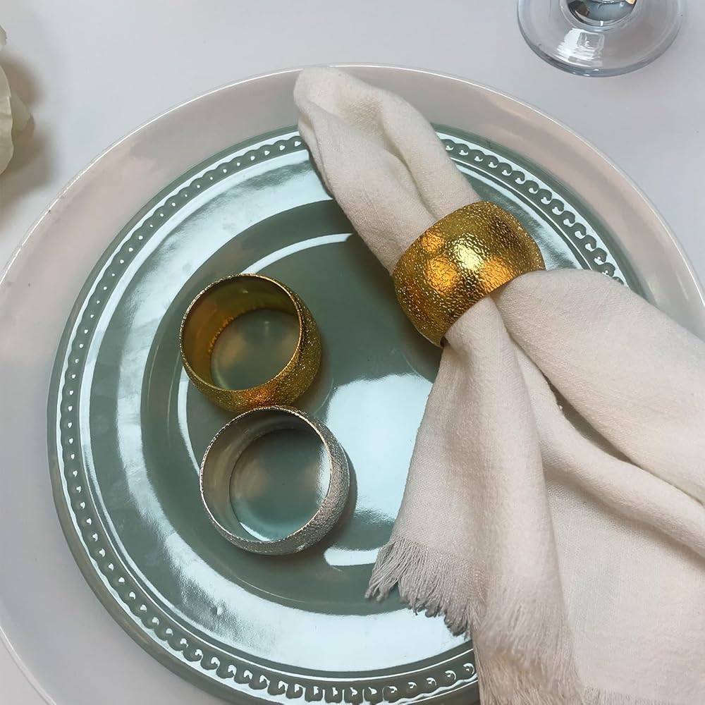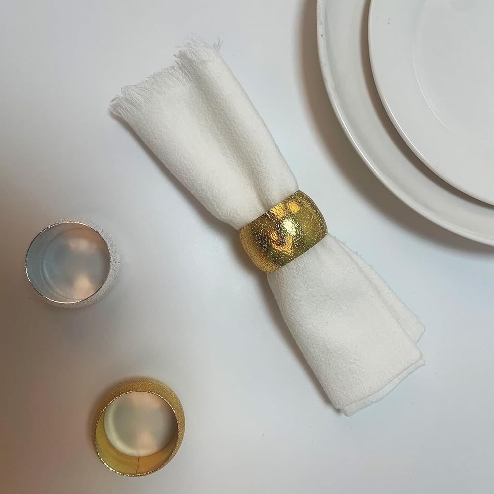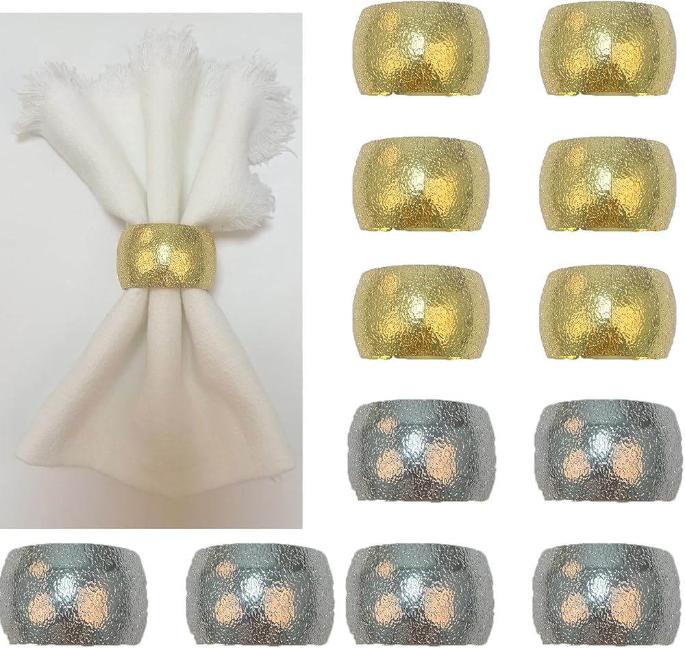 【مناسبة لأي مناسبة】: سوف تحصل على 6 حلقات مناديل ذهبية رقيقة و6 حلقات مناديل فضية رقيقة؛ يكفي لحفلة كبيرة أو التناوب. إنه مثالي لمجموعة متنوعة من المناسبات مثل حفلات الزفاف وعيد الشكر والكريسماس وعيد الفصح والولائم وعشاء الذكرى السنوية.