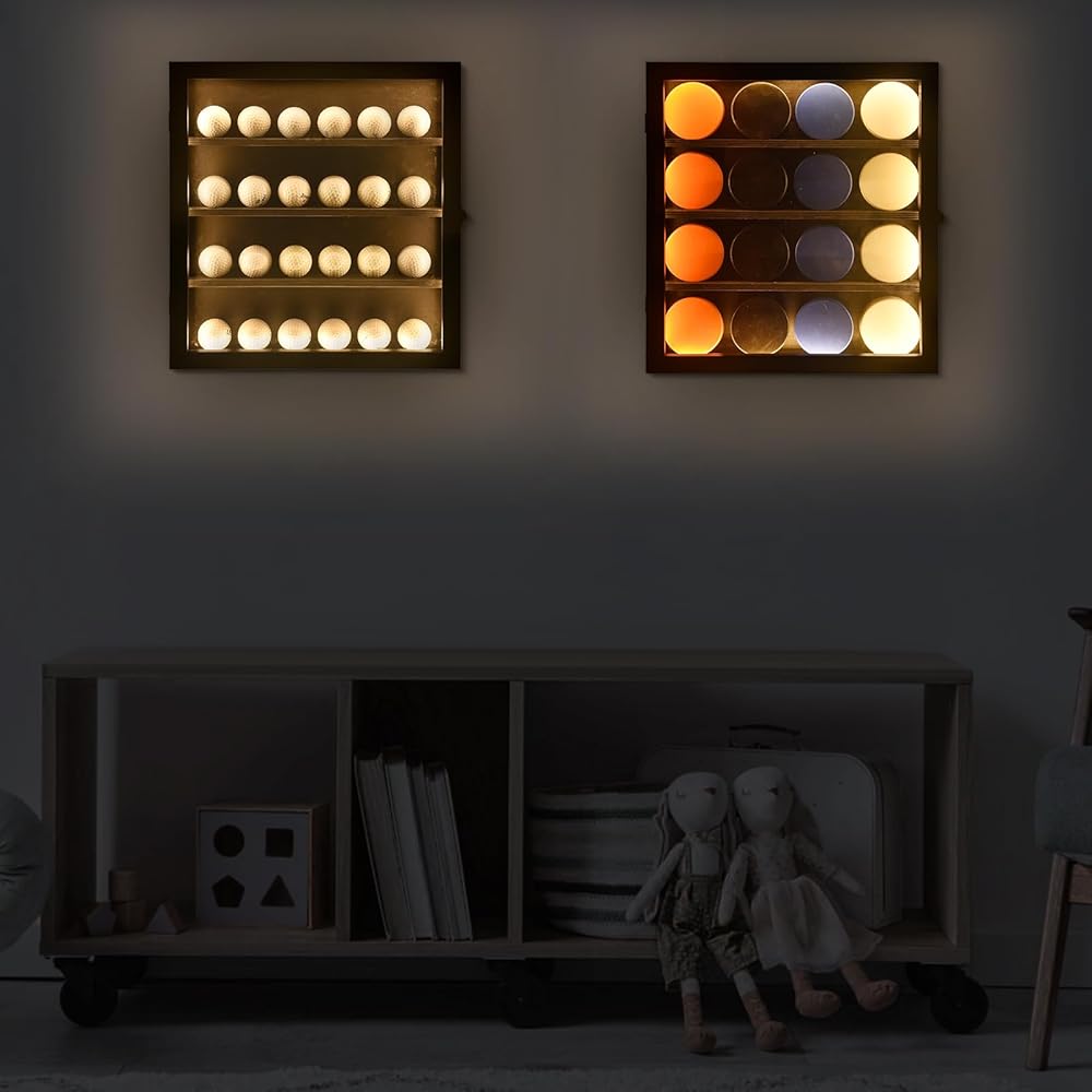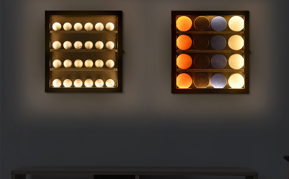 كاربين كرة جولف خفيف خافت: ضوء LED مدمج في علبة عرض كرة الجولف، لذلك لن يكون مبهرًا. الضوء خافت بحيث يمكنك ضبط السطوع ليناسب البيئة المحيطة. سيكون صندوق كرة الجولف ذو الإضاءة LED القابل للتعديل بمثابة أثاث رائع لافت للنظر على الحائط لجمع كرات الجولف وعرضها.