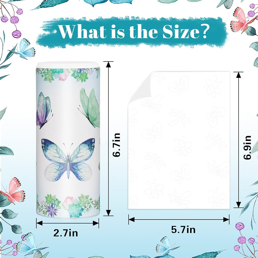【Product Size】: Cylinder tissue boxes is 6.3 in H * 2.7 in W; a pack of tissues is 5.5 in L * 3.5 in W; the transparent double-sided sticker is 1.2 in L * 1.2 in W