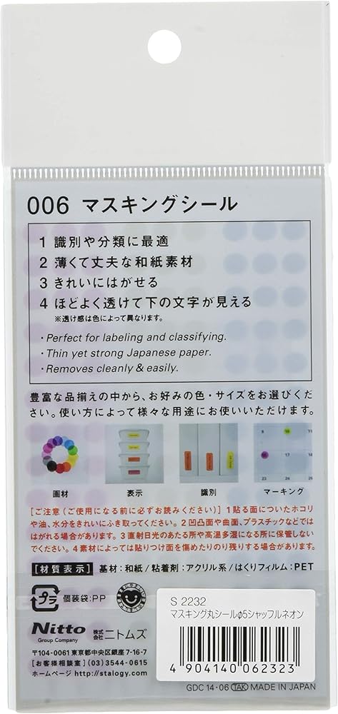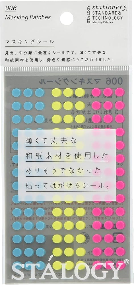 Removable and reusable, the round Stalogy Masking Tape Patches are thin and durable made of Japanese masking paper tape.