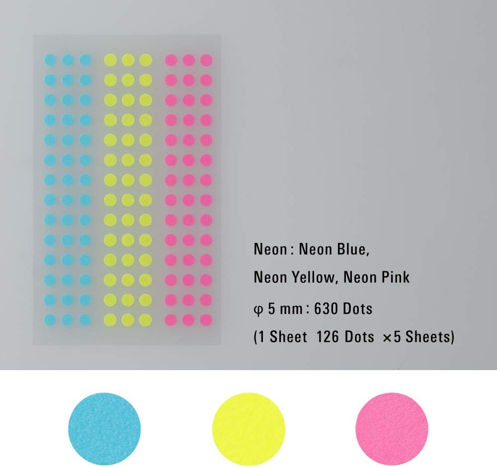Stalogy Masking Tape Patches are available in four diameter sizes, 0.2-inch (5mm), 0.3-inch (8mm), 0.6-inch (16mm), and 0.8-inch (20mm) and 12 color