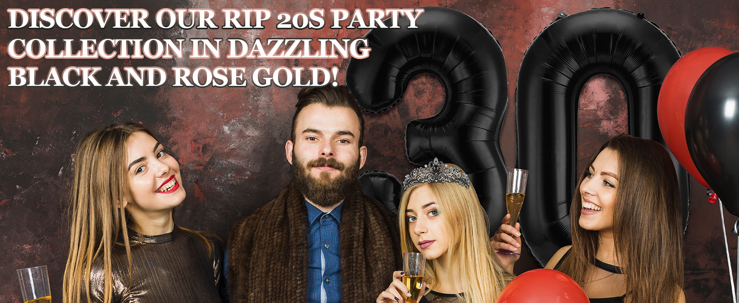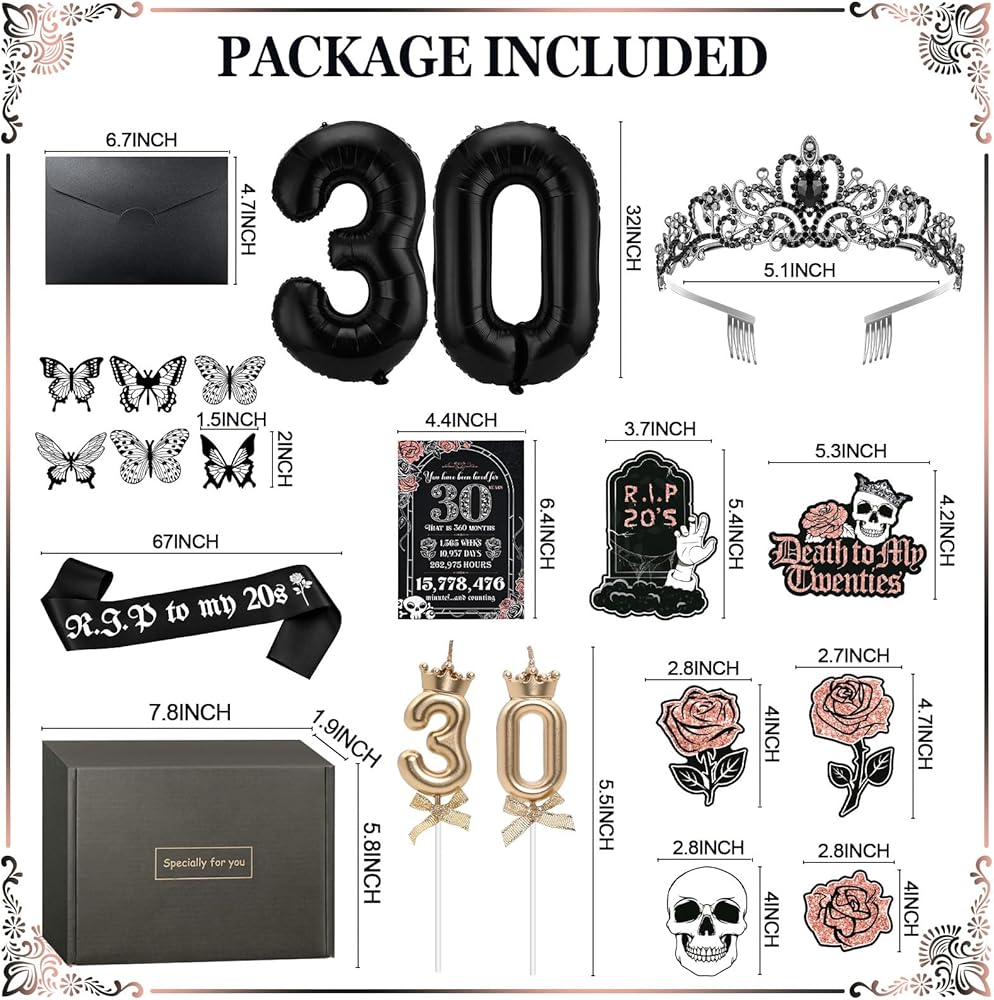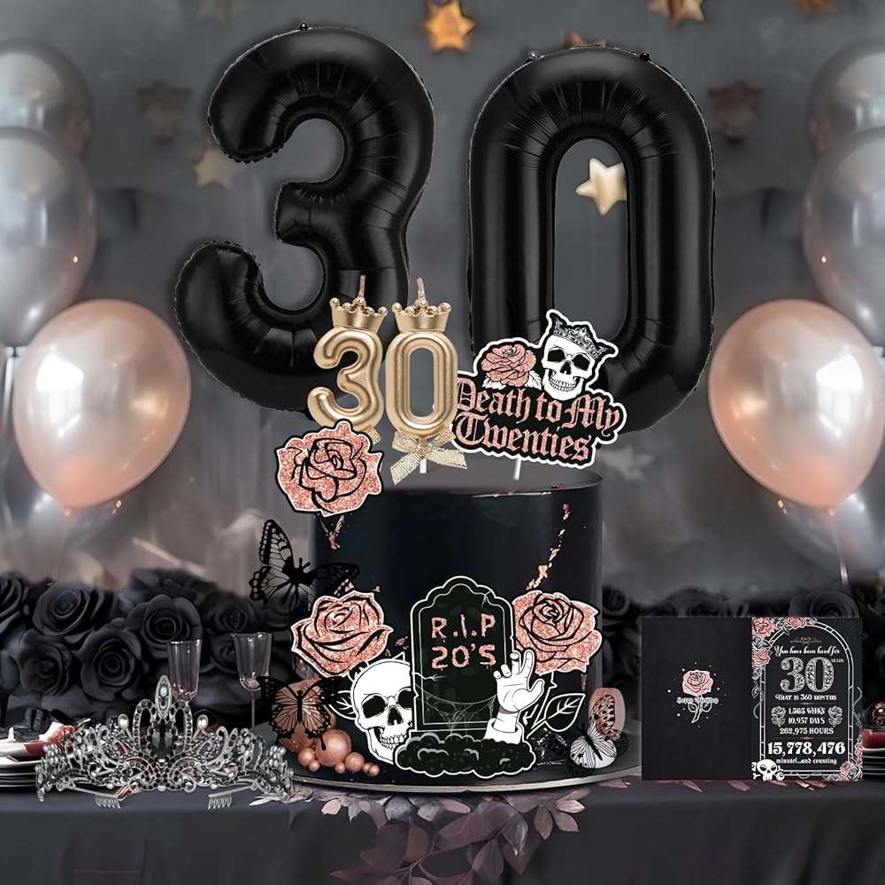 • 💎احتفل بعيد ميلادك الثلاثين بأناقة: على عكس موضوعات عيد الميلاد الثلاثين الأخرى، فإن هدايا الحفلات السوداء "RIP to My 20s" مثالية للنساء الأنيقات والمحبين القوطيين. تحياتي لمدة 30 عامًا وتصبح ملكة الحفلة! قم بتحويل احتفالك ورحب بعقدك القادم مع ديكورات عيد الميلاد الثلاثين المذهلة!