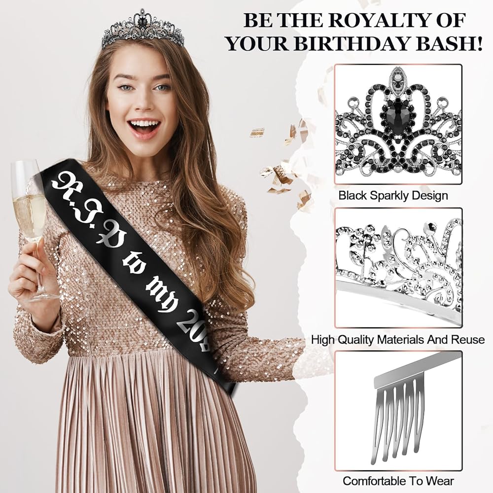 • 👑 وشاح وتاج عيد الميلاد الثلاثين الرائع: التاج الأسود مصنوع من معدن قوي، مزين بأحجار الراين والكريستال المبهرة، ويأتي مع مشط لضمان بقائه ثابتًا في مكانه. تصميم الوشاح "RIP 20s" القابل للتعديل باللونين الأسود والأبيض مع الورد، مصنوع من قماش الساتان البوليستر الفاخر. توديع العشرينات من عمرك بأناقة كملكة!