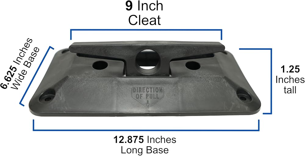 Say goodbye to stubbed toes on your dock with the innovative Black Cleat Seat! This cleat features a low-profile design, standing at just 1.25" tall, significantly reducing tripping hazards. Mounted on a sturdy 6.625" x 12.875" base, the 9" cleat smoothly swings up and locks into place when needed. Crafted from durable, noncorrosive, UV-resistant nylon composite, it ensures long-lasting performance in any weather. The Bigger and Better Cleat Seat. Unlike the smaller size 02100, the B9001 cleat offers larger weight and rope capacity.