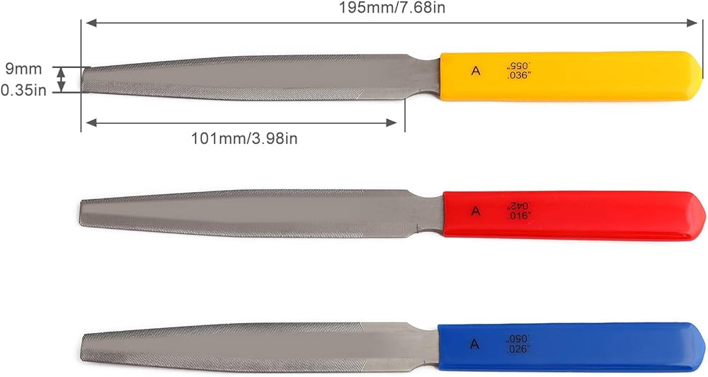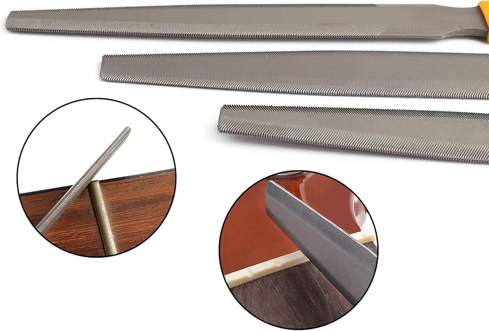 This is a must for shops building, repairing, changing nut, 3 double side nut file .016"/.026"/.036"/.042"/.050"/.055″, Set for folk acoustic guitars.