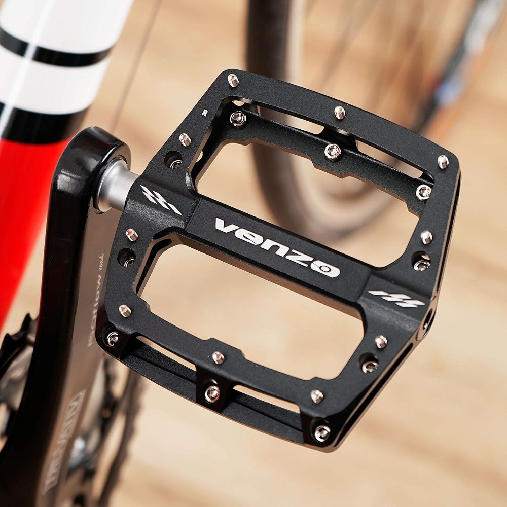 دواسات تحمل محكمة الغلق من الألومنيوم للدراجات الجبلية BMX MTB من VENZO - منصة دراجة كبيرة - 110 مم × 100 مم - دواسات 9/16 بوصة مع مسمار مضاد للانزلاق ومضاد للانزلاق