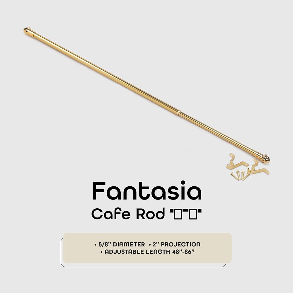 قضيب ستارة نافذة مزخرف من فانتازيا كافيه، عرض قابل للتعديل 48 بوصة - 86 بوصة، قطر 5/8 بوصة، عرض 2 بوصة - نحاس مع نهايات مطابقة - قضيب تلسكوبي سهل التركيب - الأقواس والأجهزة متضمنة
